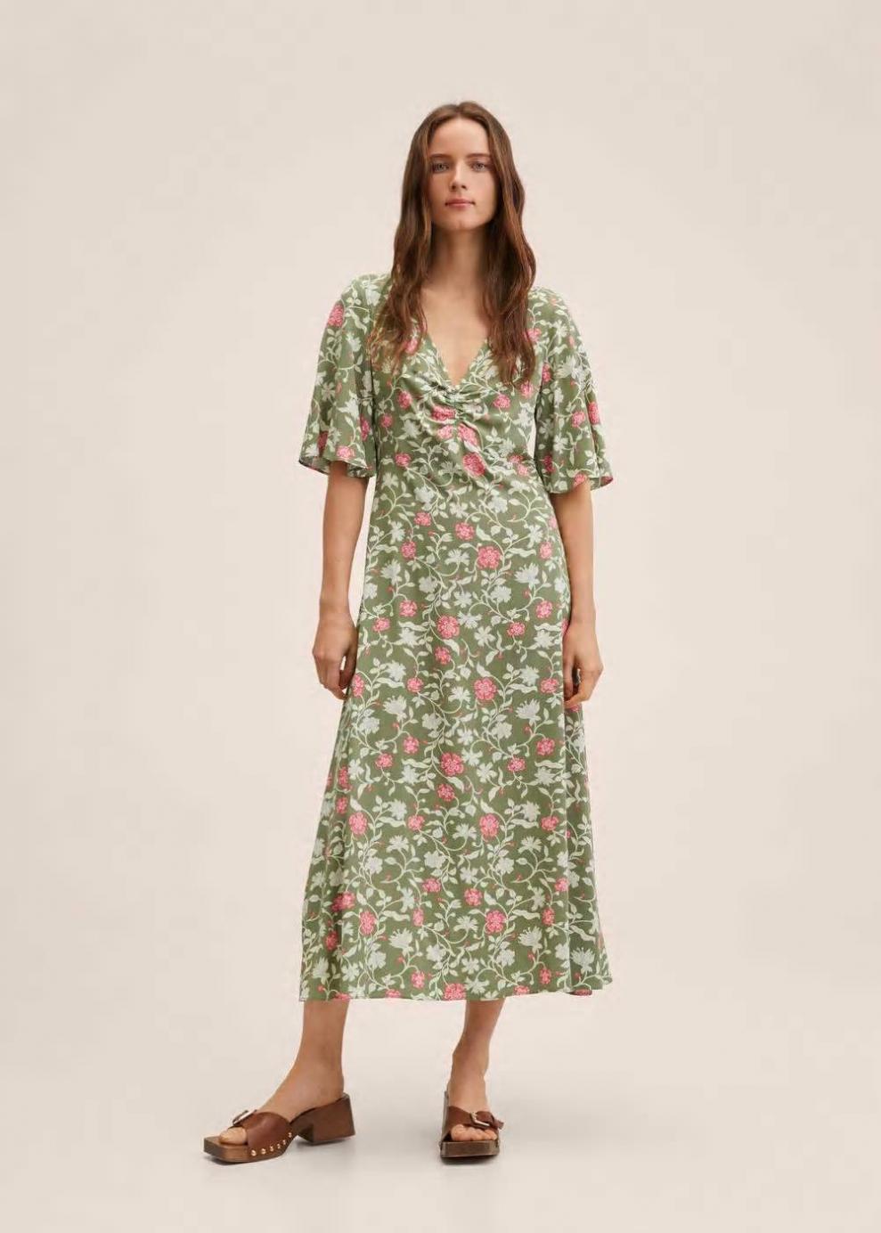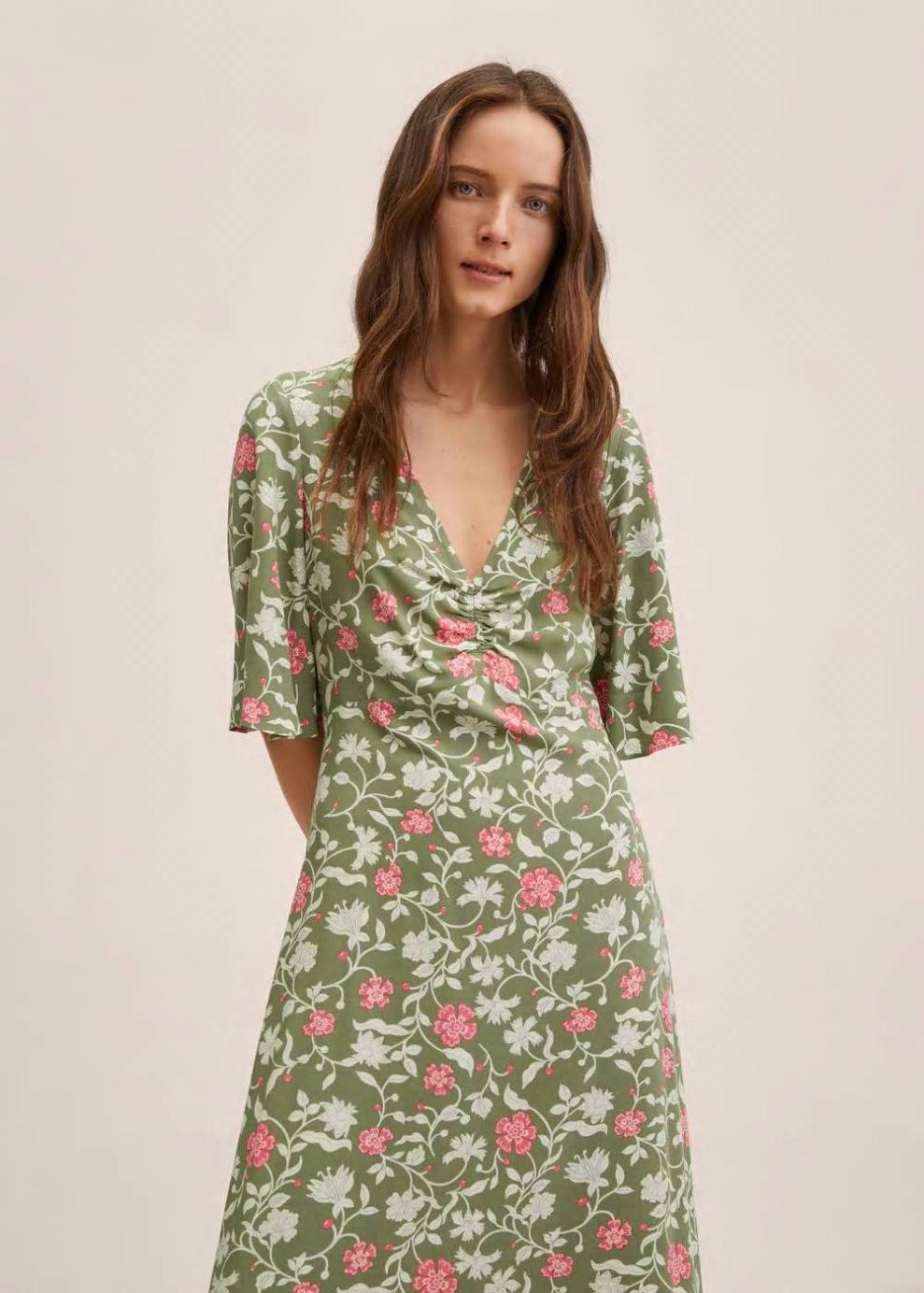 Colección Committed Tejido fluido Estampado topos Diseño largo Diseño evasé Cuello pico Manga corta con volante Detalle fruncido Cierre lateral de cremallera Disponible Plus Las prendas etiquetadas como Committed son productos que han sido confeccionadas con fibras y/o procesos de producción sostenible, reduciendo así su impacto ambiental. El objetivo de Mango es respaldar la implementación de prácticas más comprometidas con el medio ambiente, aumentando así, el número de prendas sostenibles en su colección.
