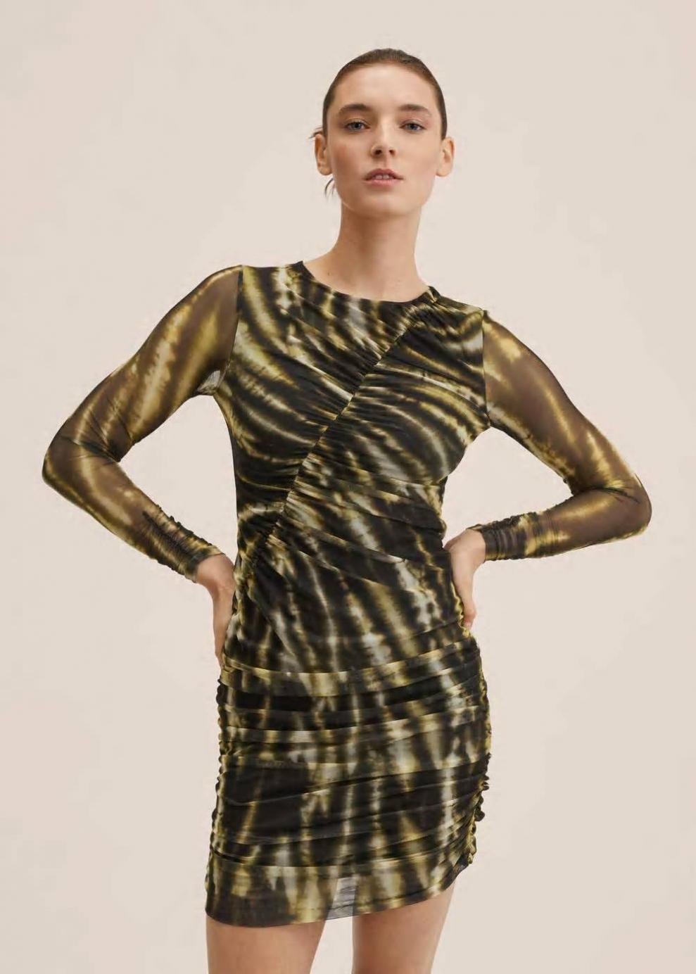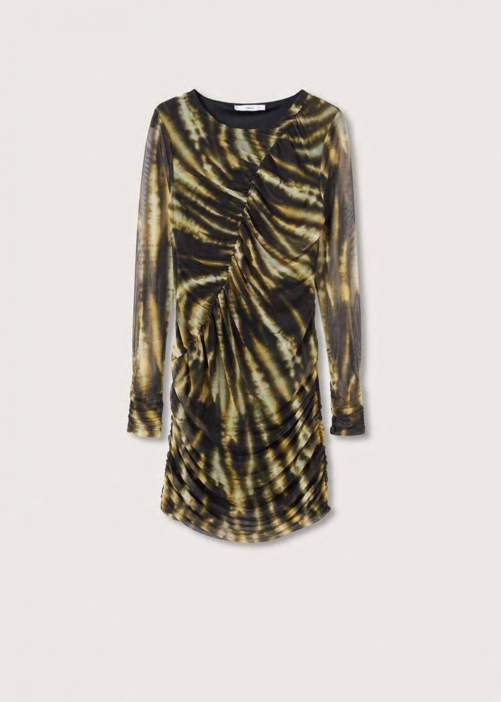 Mujer Vestido fruncido estampado Negro | Vestidos y monos Mango