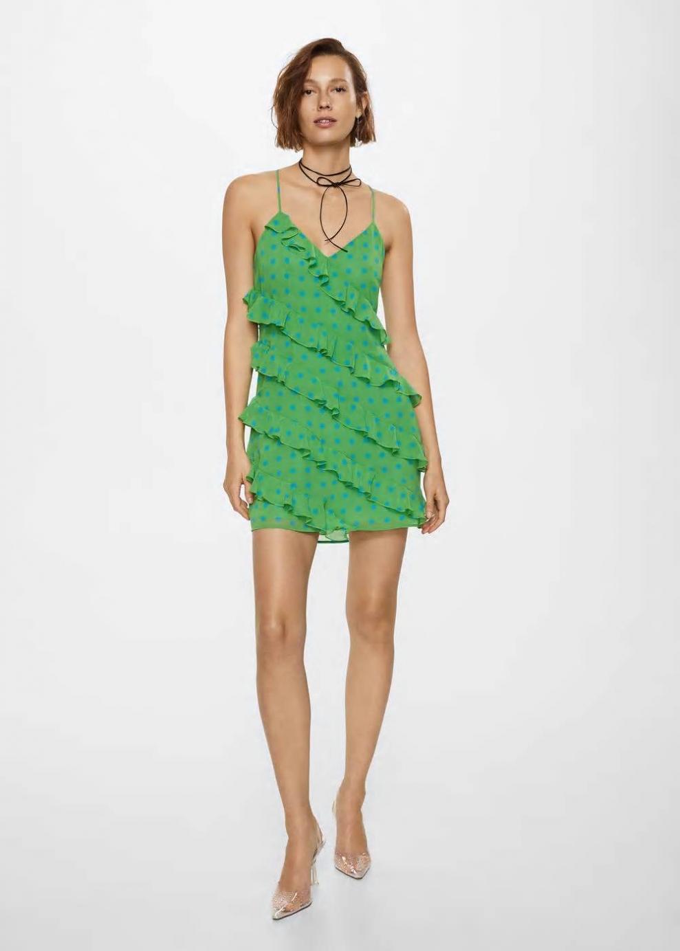 Mujer Vestido lunares volantes Verde | Vestidos y monos Mango