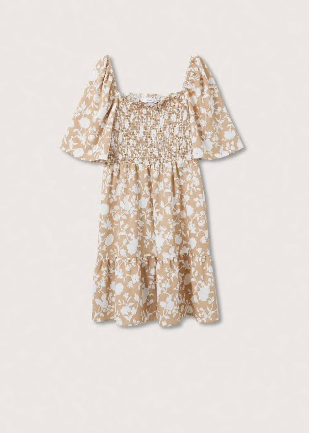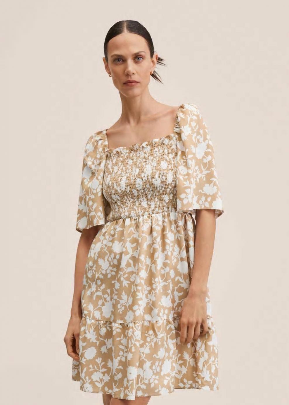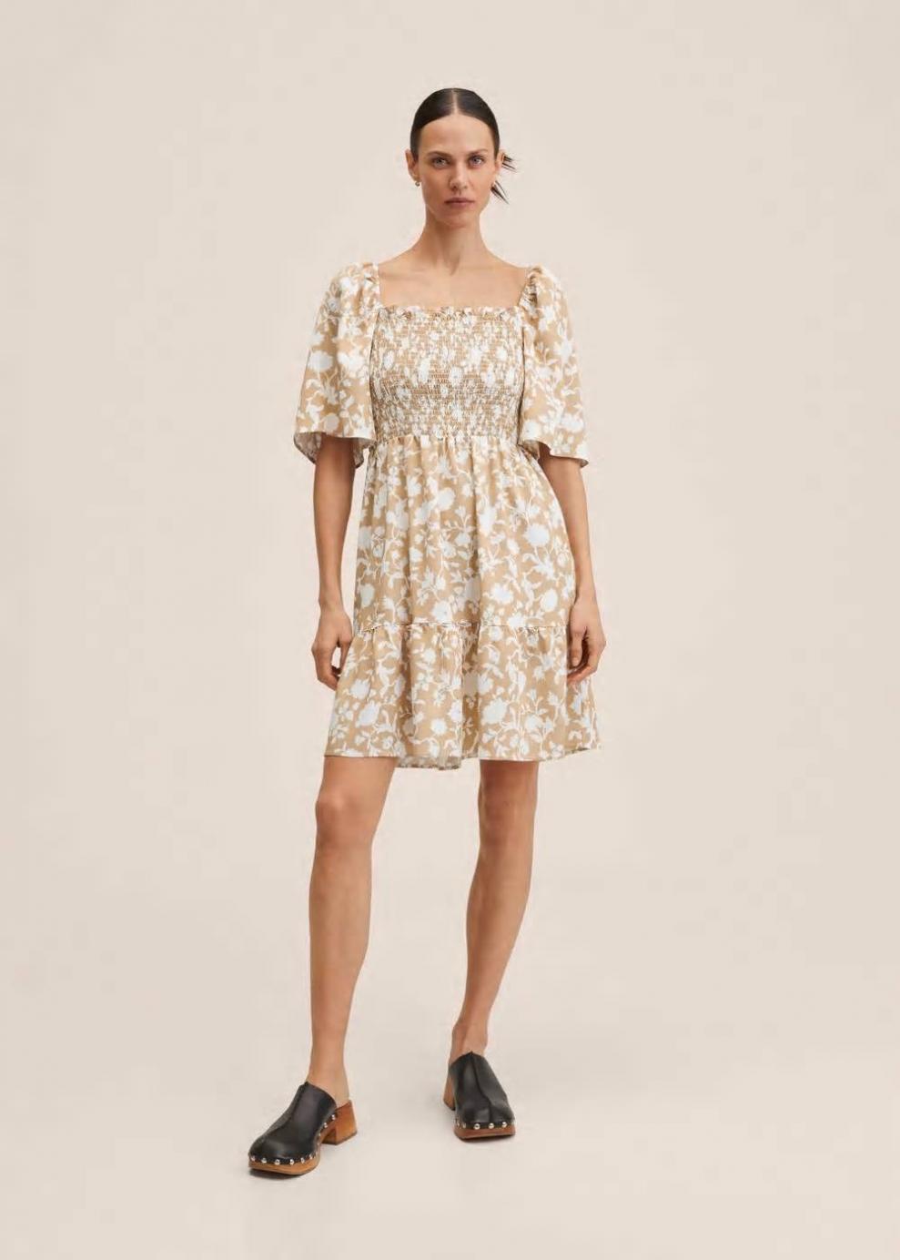 Colección Committed Tejido fluido Diseño corto Diseño evasé Cuello escotado Fruncido elástico Manga corta abullonada Volante en el bajo Las prendas etiquetadas como Committed son productos que han sido confeccionadas con fibras y/o procesos de producción sostenible, reduciendo así su impacto ambiental. El objetivo de Mango es respaldar la implementación de prácticas más comprometidas con el medio ambiente, aumentando así, el número de prendas sostenibles en su colección.
