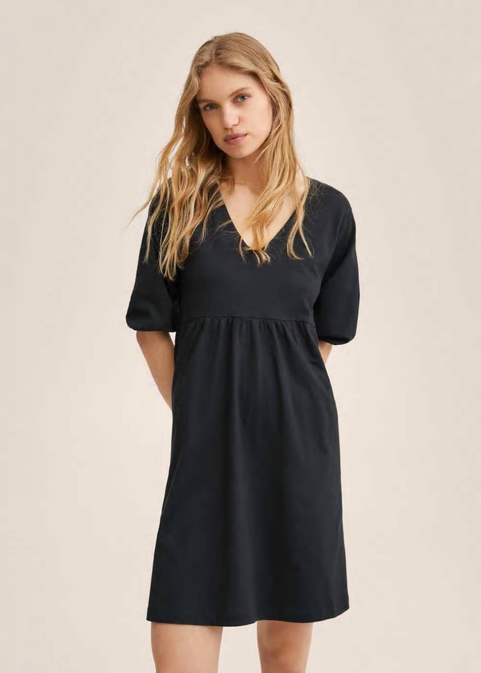 Colección Committed 100% Algodón Diseño corto Diseño evasé Cuello pico Manga tres cuartos Puños elásticos Detalle fruncido en la cintura Las prendas etiquetadas como Committed son productos que han sido confeccionadas con fibras y/o procesos de producción sostenible, reduciendo así su impacto ambiental. El objetivo de Mango es respaldar la implementación de prácticas más comprometidas con el medio ambiente, aumentando así, el número de prendas sostenibles en su colección.