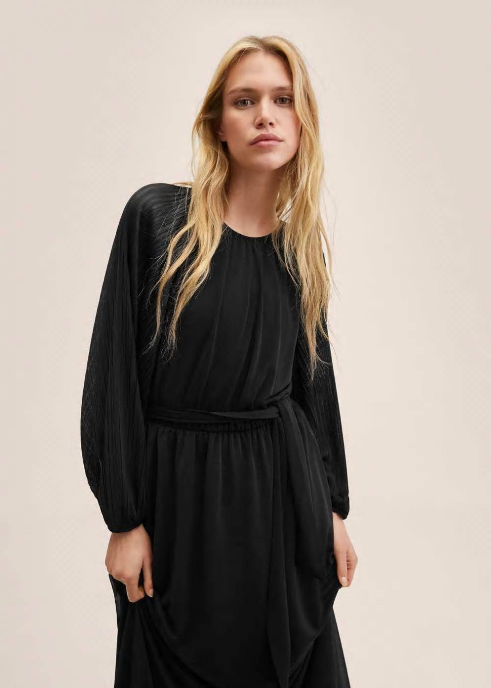 Tejido plisado Diseño evasé Diseño largo Cuello redondo Manga larga abullonada Cinturón desmontable Forro interior Ramadan Collection Colección fiesta y ceremonia…