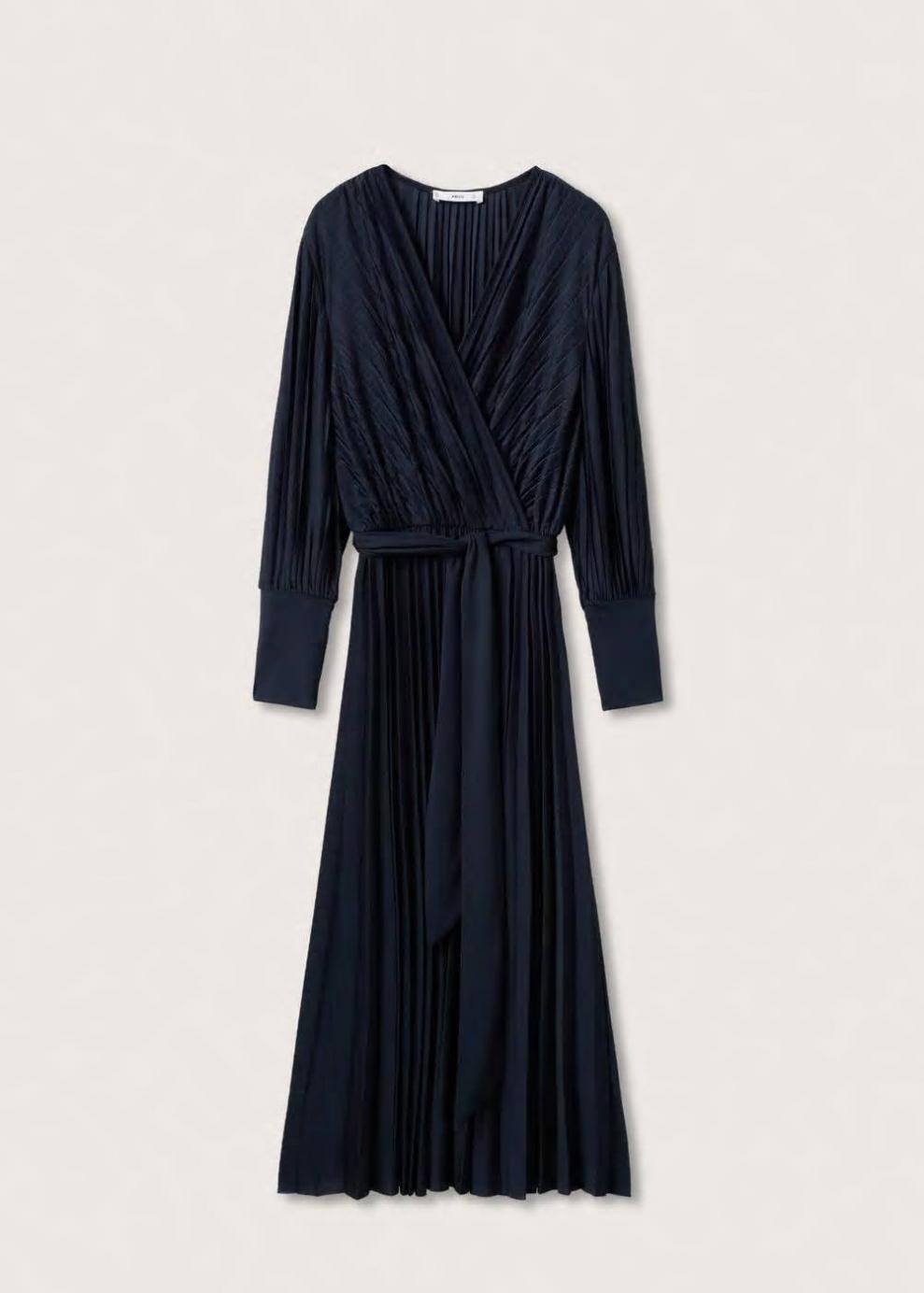 Tejido plisado Diseño evasé Diseño largo Diseño cruzado Cuello pico Manga larga abullonada Cintura elástica Cinturón desmontable Colección fiesta y ceremonia Ramadan Collection…
