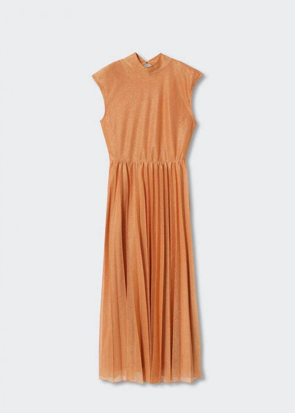Tejido de lúrex Diseño evasé Diseño largo Diseño plisado Cuello halter Sin mangas Cierre trasero Colección fiesta y ceremonia
