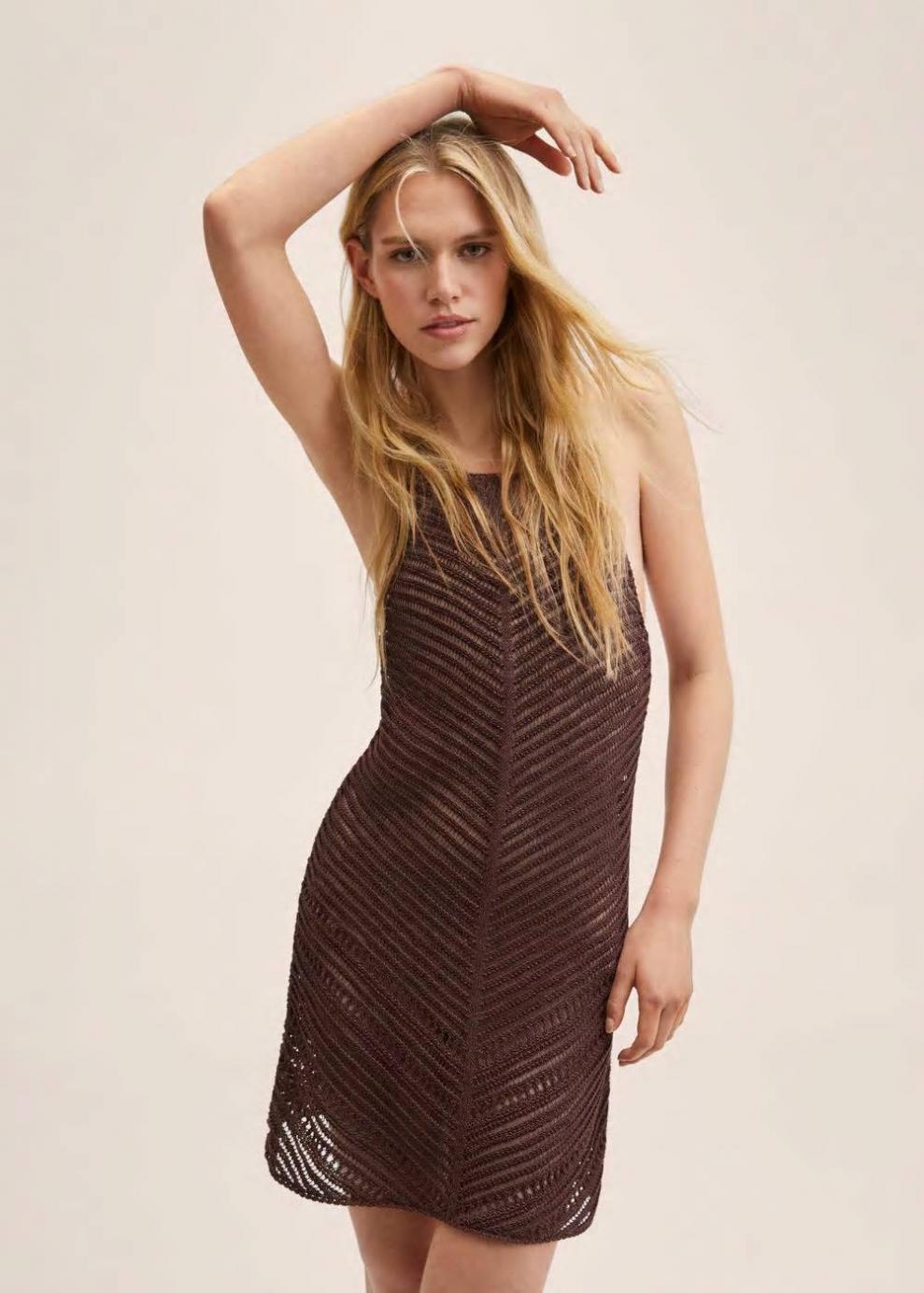 Tejido de punto calado Diseño semitransparente Diseño corto Diseño recto Cuello escotado Sin mangas Tirantes finos Tirantes cruzados en la espalda Sin forro interior Total look