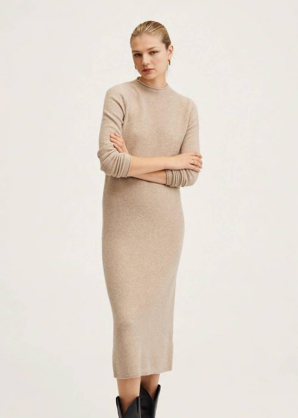 Mujer Vestido punto cuello perkins Marrón Medio | Vestidos y monos Mango