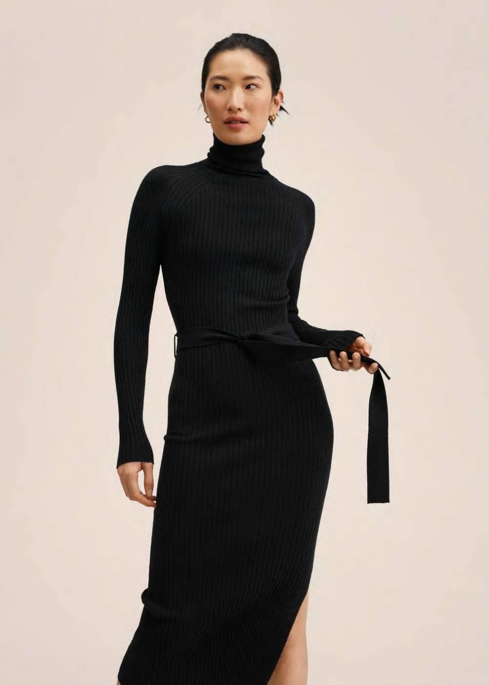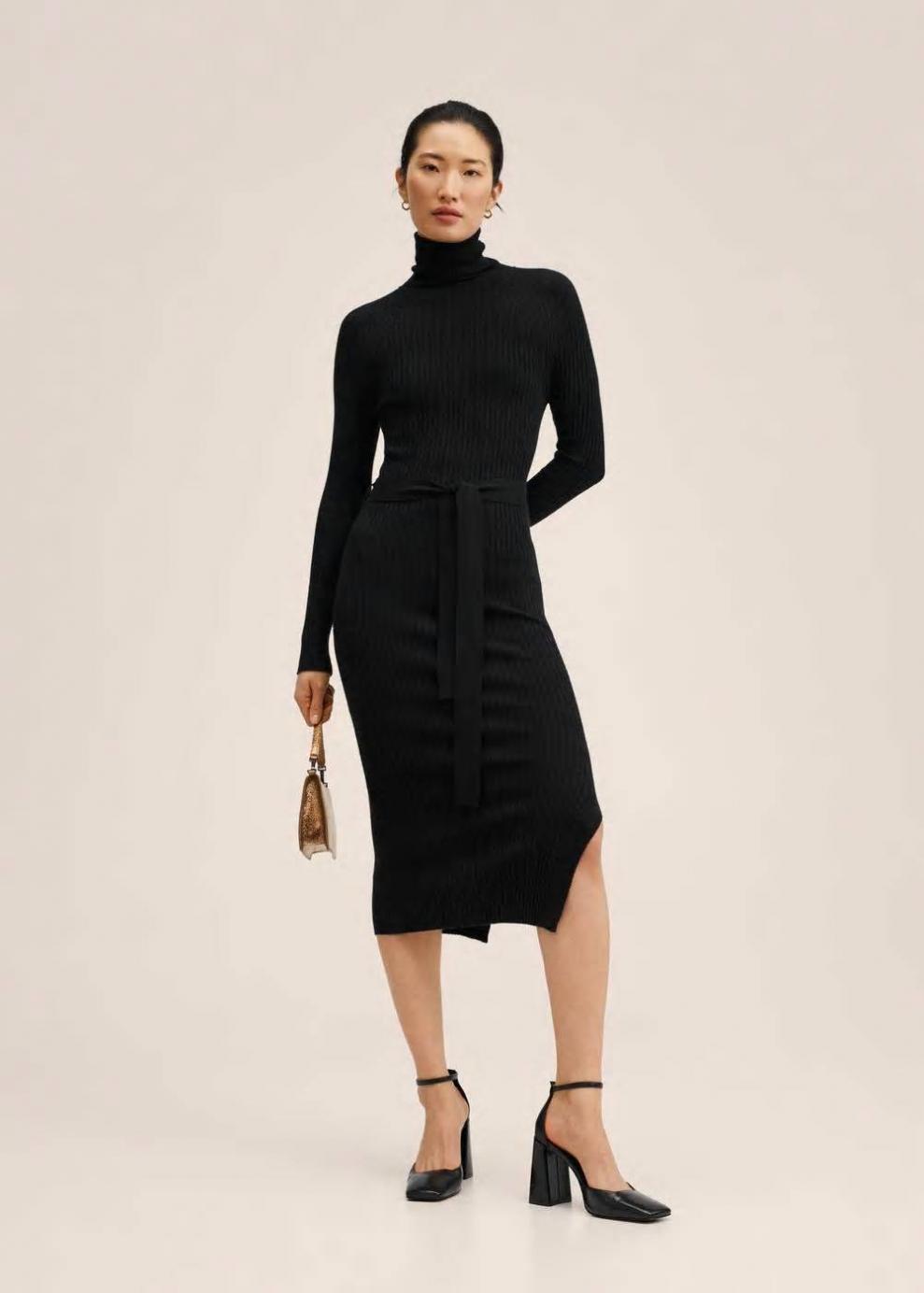 Colección Committed Cuello alto Tejido de punto fino Sin cierre Sin forro interior Slim fit Tejido de punto de canalé Diseño largo Diseño entallado Cuello vuelto Manga larga Cinturón decorativo Abertura lateral Colección fiesta y ceremonia Las prendas etiquetadas como Committed son productos que han sido confeccionadas con fibras y/o procesos de producción sostenible, reduciendo así su impacto ambiental. El objetivo de Mango es respaldar la implementación de prácticas más comprometidas con el medio ambiente, aumentando así, el número de prendas sostenibles en su colección.