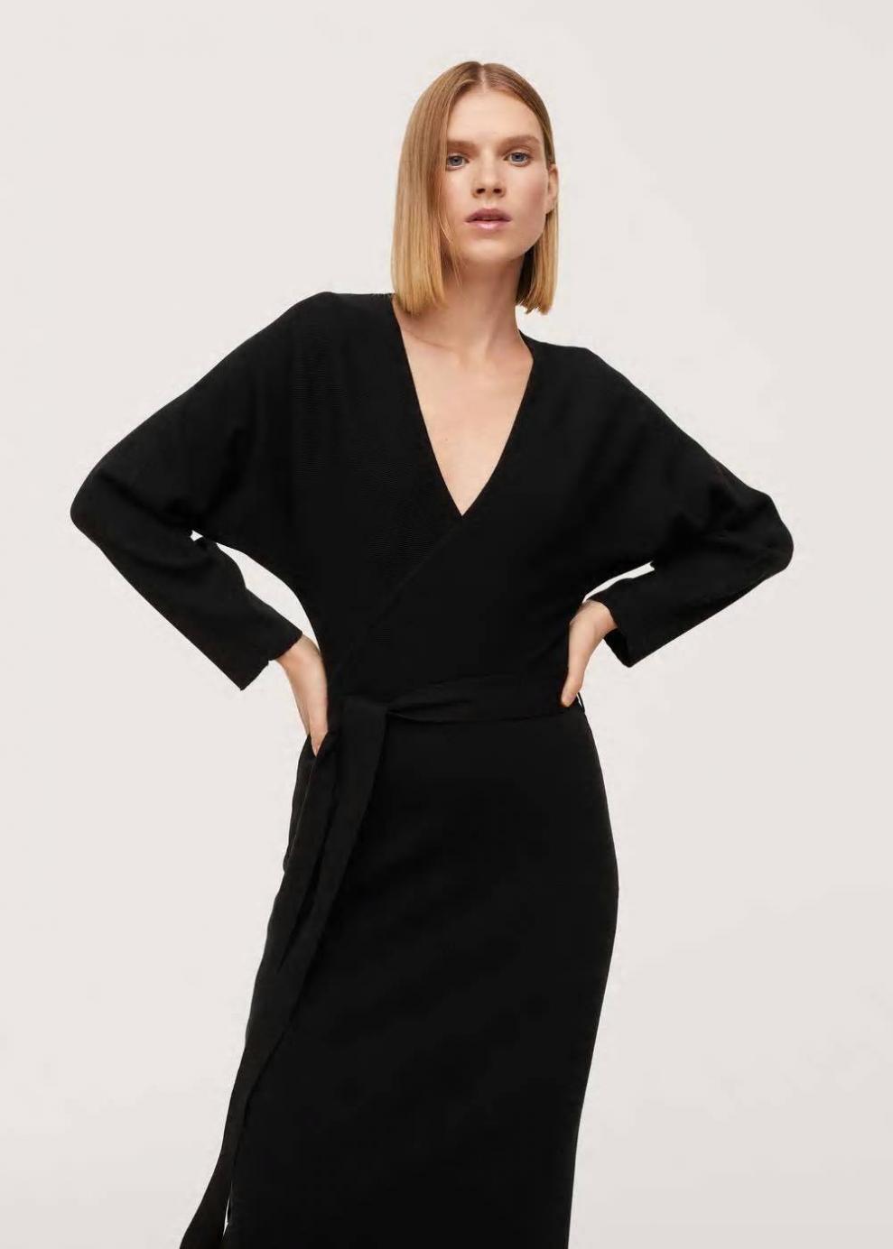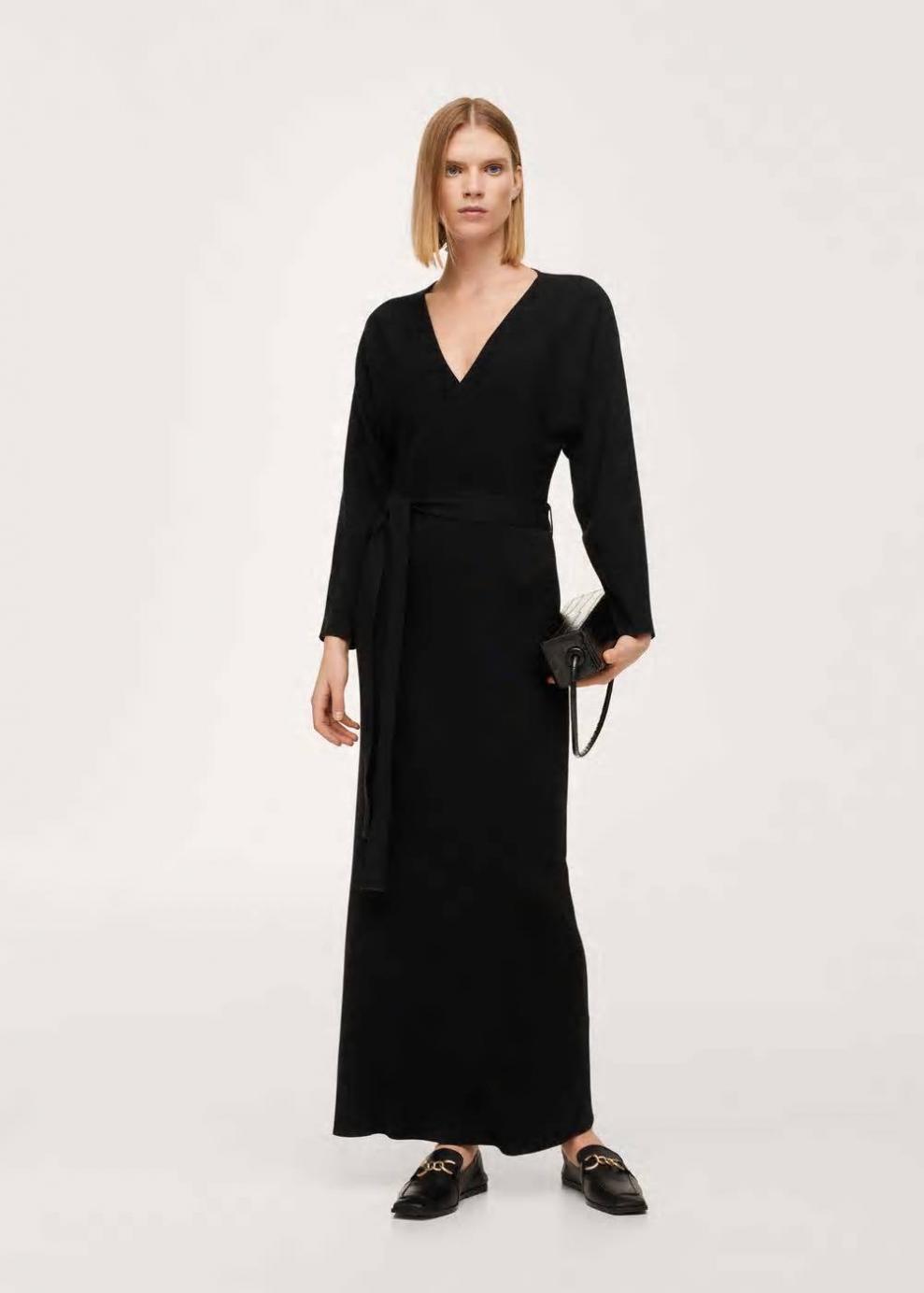 Tejido de punto fino Slim fit Sin forro interior Sin cierre Diseño largo Diseño recto Cuello cruzado Manga larga Cinturón decorativo Colección fiesta y ceremonia…