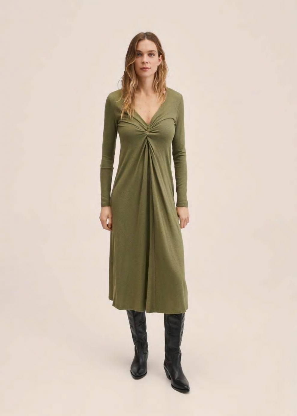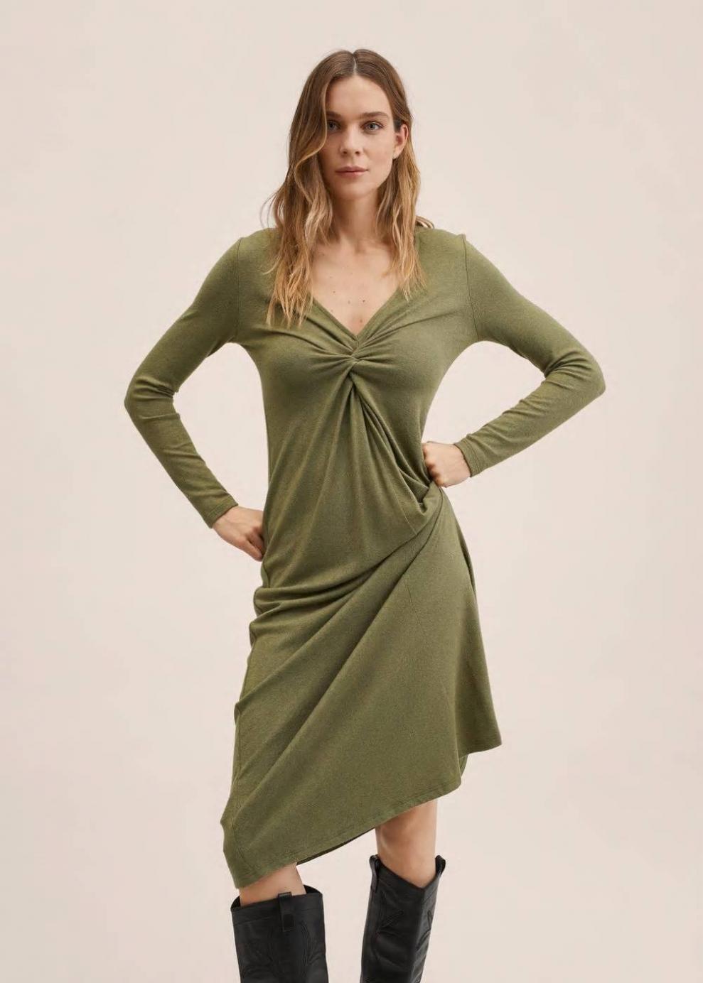 Mujer Vestido punto nudo Khaki | Vestidos y monos Mango