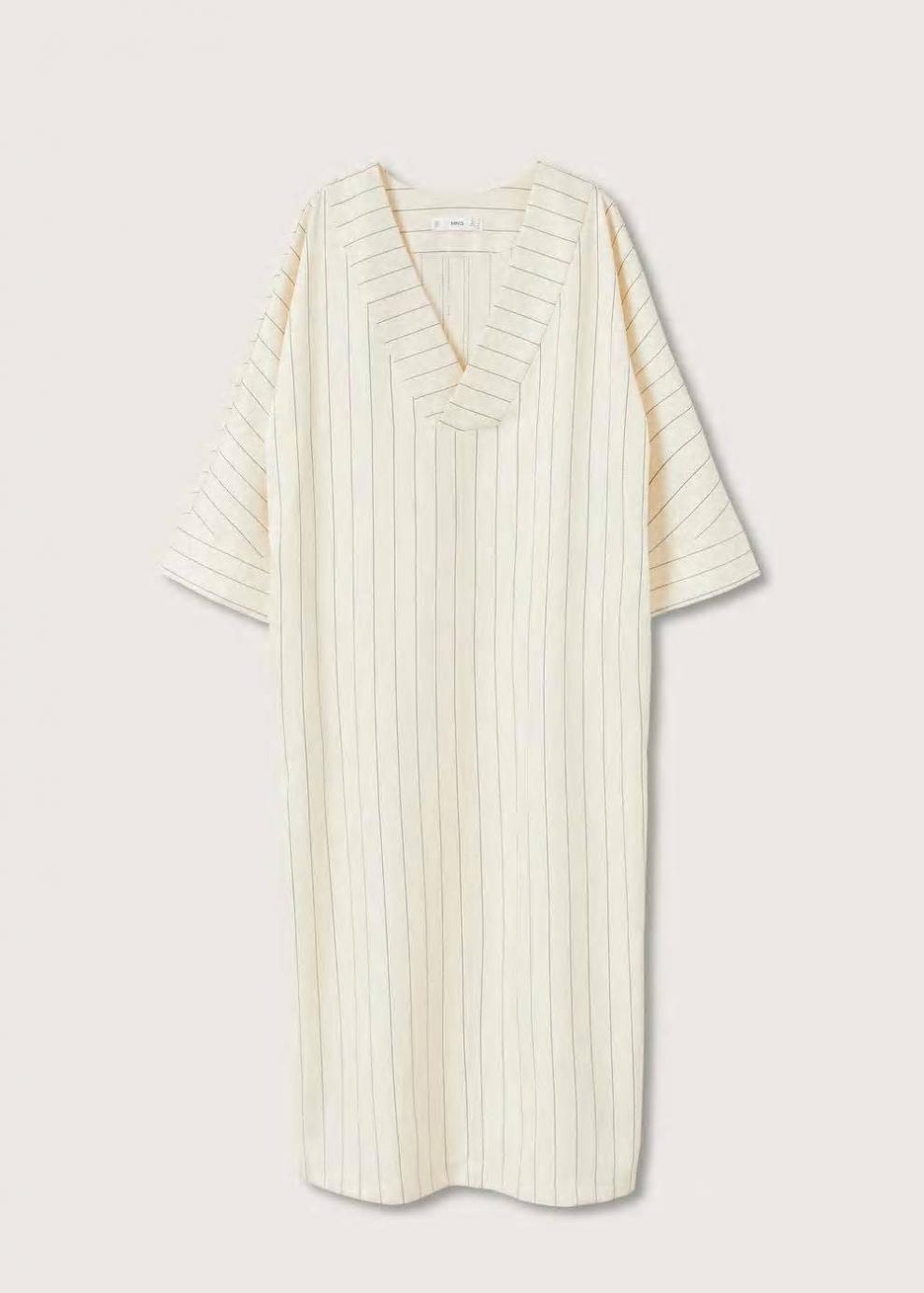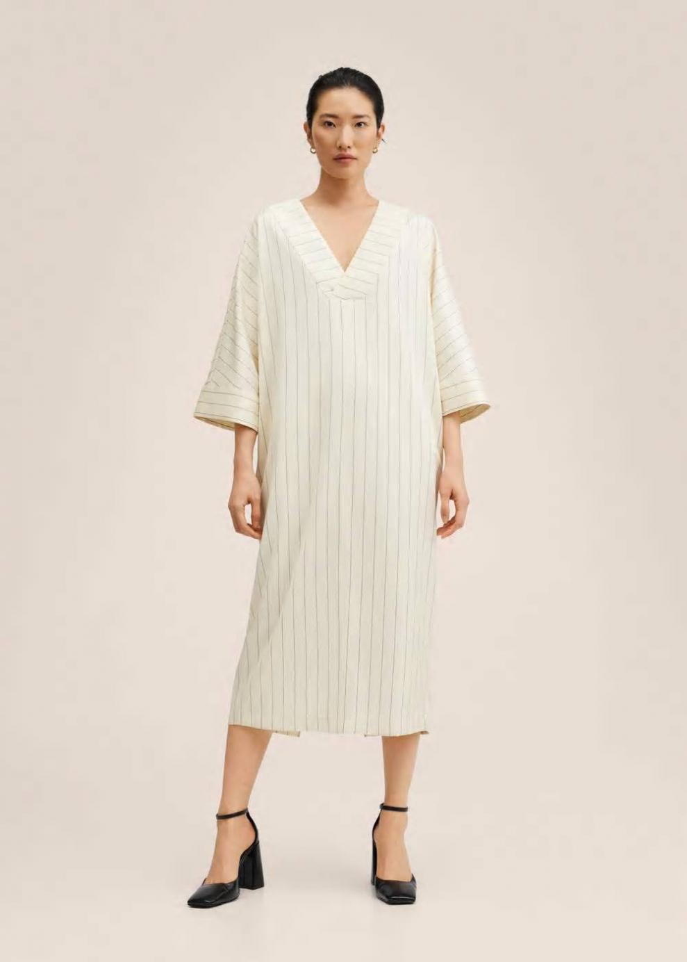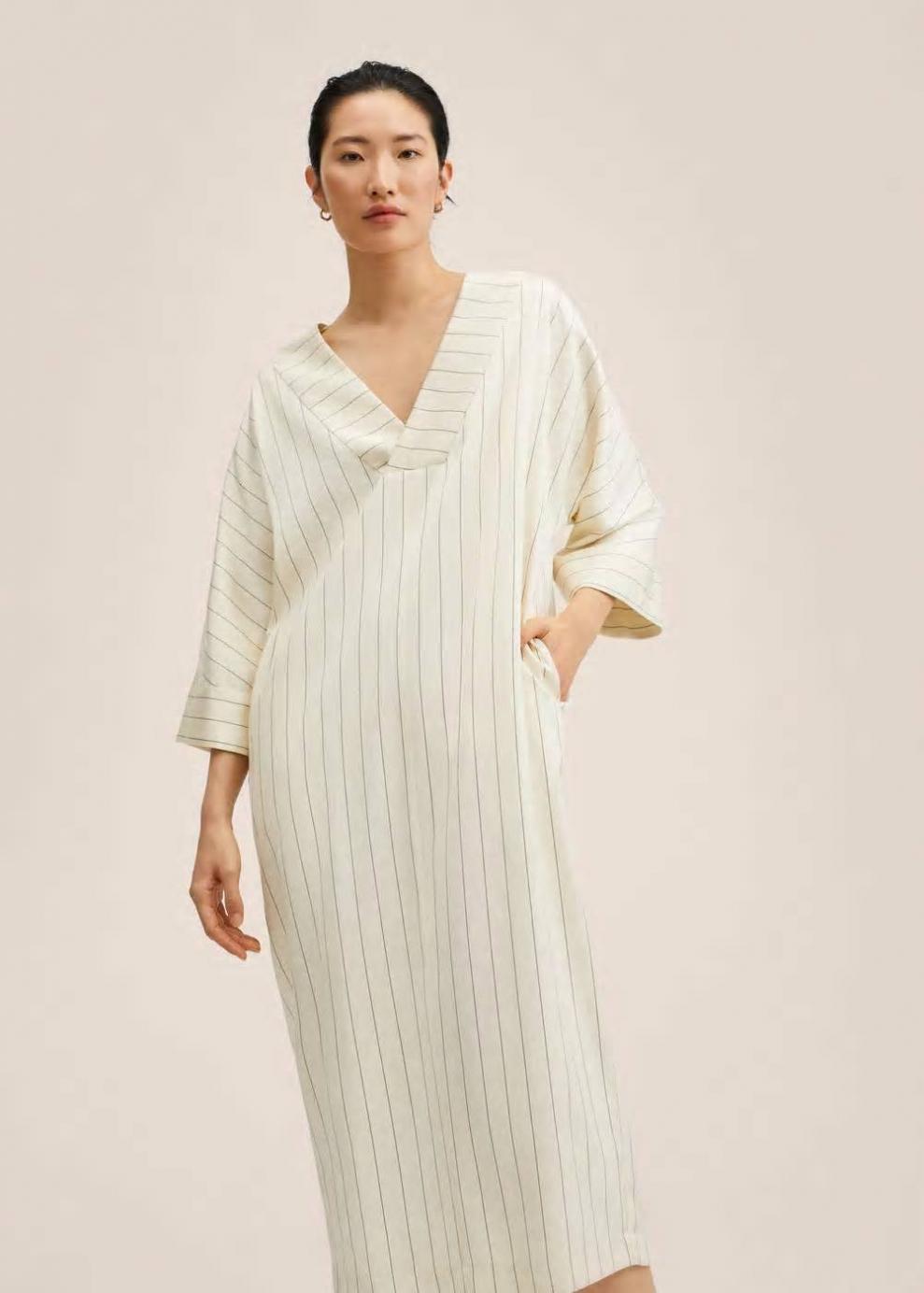 Sin cierre Tejido fluido Tejido ligero Manga tres cuartos Sin forro interior Diseño de rayas Diseño oversize Diseño midi Cuello pico Manga tres cuartos acampanada Detalle de abertura Las prendas etiquetadas como Committed son productos que han sido confeccionadas con fibras y/o procesos de producción sostenible, reduciendo así su impacto ambiental. El objetivo de Mango es respaldar la implementación de prácticas más comprometidas con el medio ambiente, aumentando así, el número de prendas sostenibles en su colección.