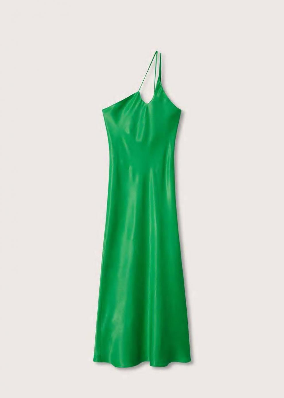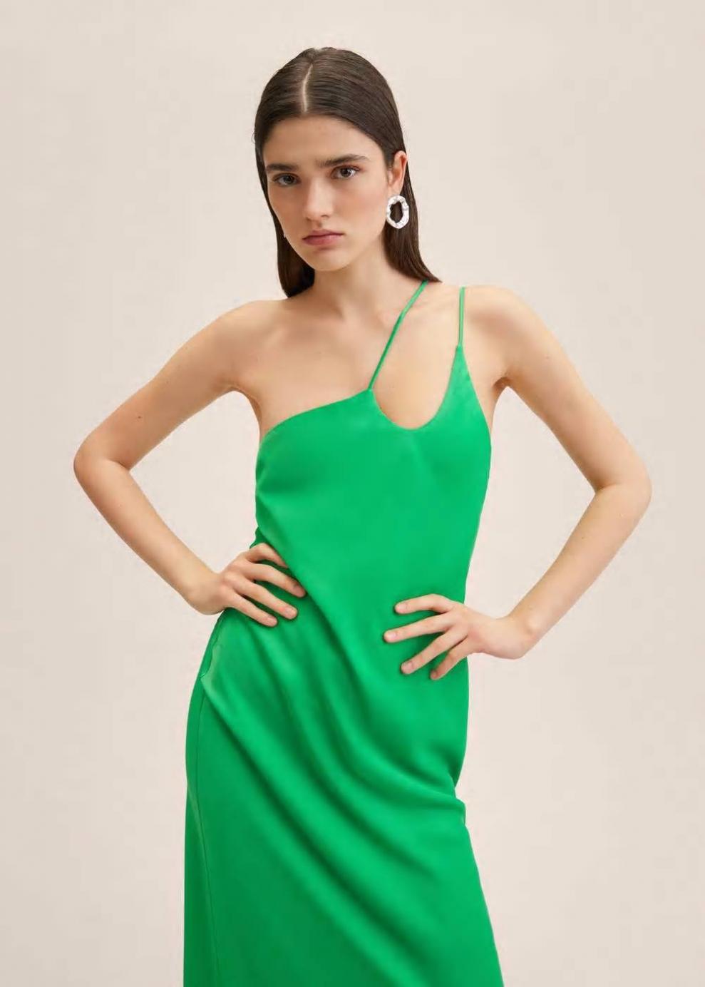 Mujer Vestido satinado asimétrico Verde | Vestidos y monos Mango