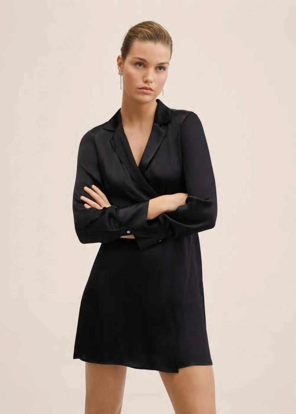 Tejido satinado Diseño recto Diseño corto Diseño cruzado Cuello pico con solapa Cuello cruzado Manga larga abotonada Cierre de cordón Colección fiesta y ceremonia…