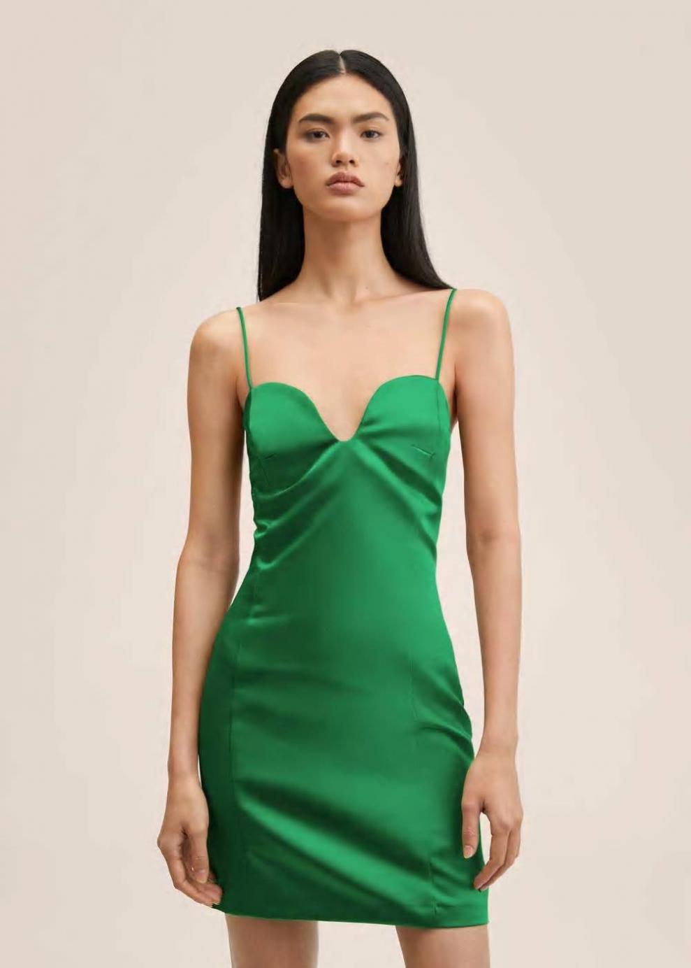 Tejido satinado Diseño entallado Diseño corto Cuello escotado Escote corazón Sin mangas Tirantes finos Tirantes ajustables Cierre de cremallera en la parte posterior Colección fiesta y ceremonia Las prendas etiquetadas como Committed son productos que han sido confeccionadas con fibras y/o procesos de producción sostenible, reduciendo así su impacto ambiental. El objetivo de Mango es respaldar la implementación de prácticas más comprometidas con el medio ambiente, aumentando así, el número de prendas sostenibles en su colección.