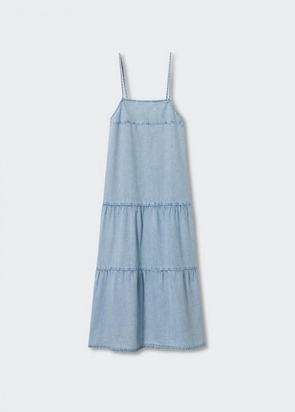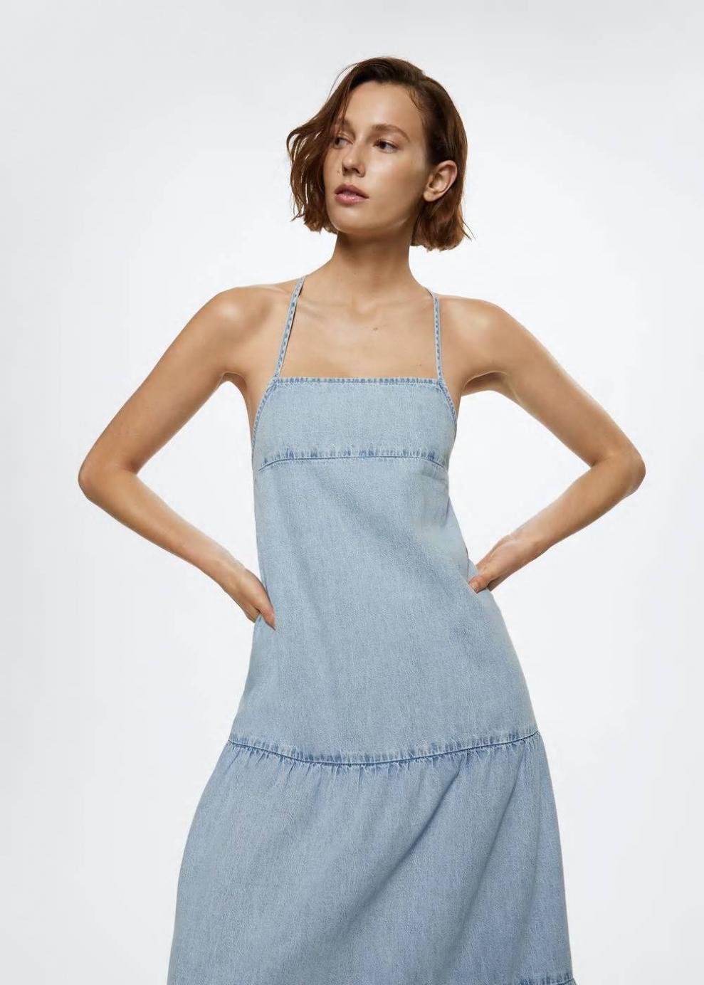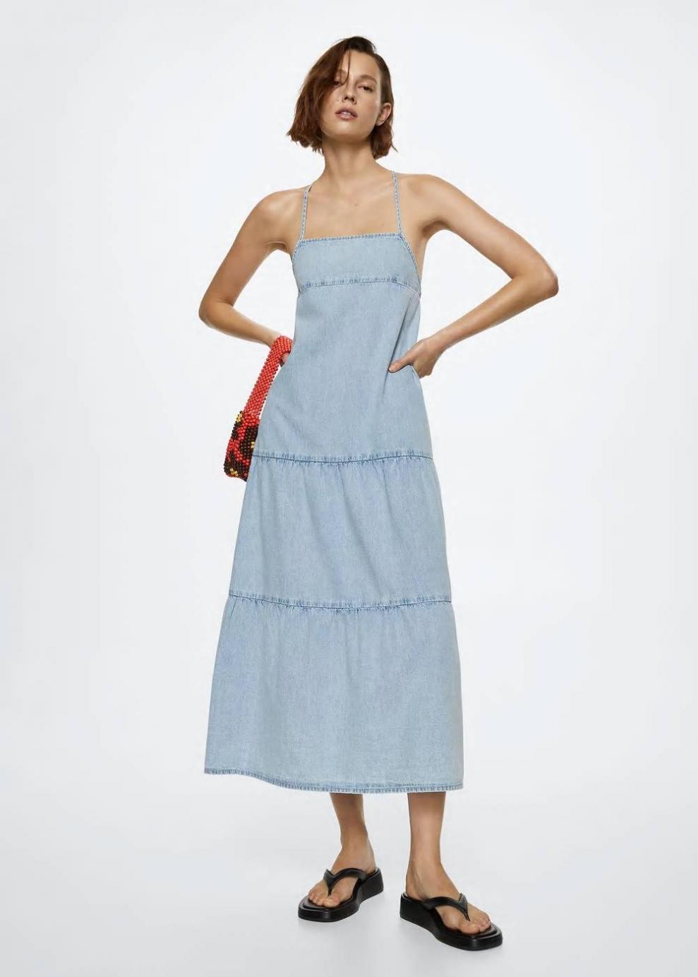 Colección Committed 100% Algodón Tejido denim ligero Diseño largo Diseño evasé Diseño volantes Cuello escotado Tirantes finos Fruncido elástico Las prendas etiquetadas como Committed son productos que han sido confeccionadas con fibras y/o procesos de producción sostenible, reduciendo así su impacto ambiental. El objetivo de Mango es respaldar la implementación de prácticas más comprometidas con el medio ambiente, aumentando así, el número de prendas sostenibles en su colección.