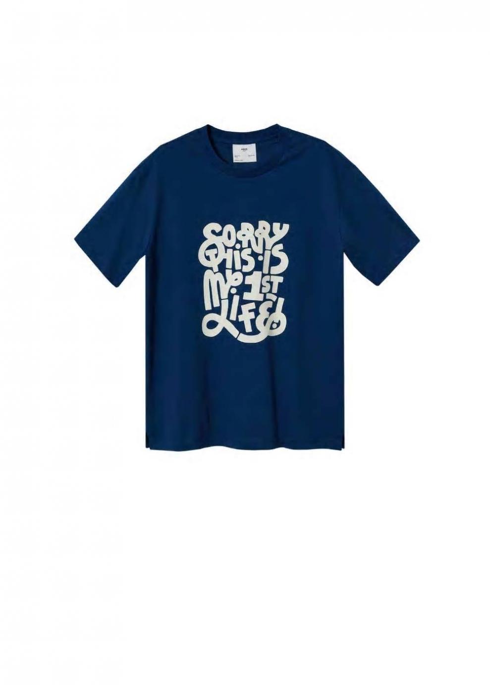 Hombre Camiseta algodón estampada Azul Marino Oscuro | Camisetas Mango