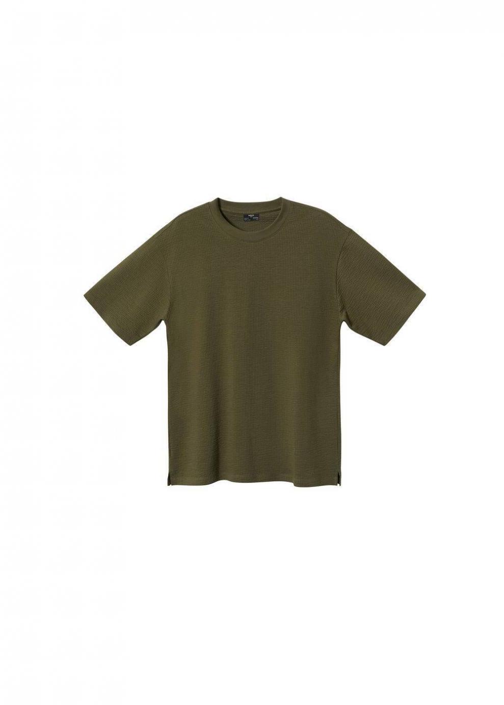 Hombre Camiseta algodón seersucker Khaki | Camisetas Mango