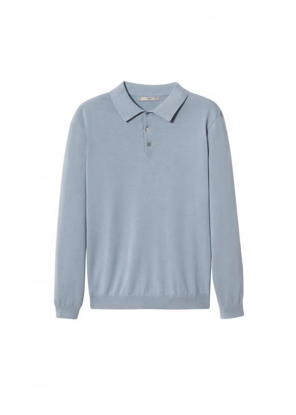 Hombre Polo punto algodón manga larga Azul Celeste | Jerséis y cárdigans Mango