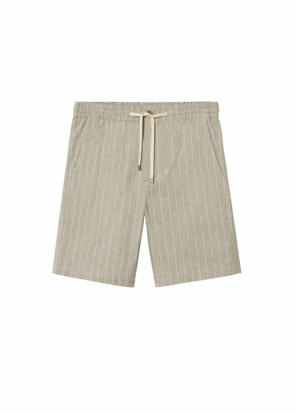 Hombre Bermuda algodón lino cordón Beige | Bermudas Mango
