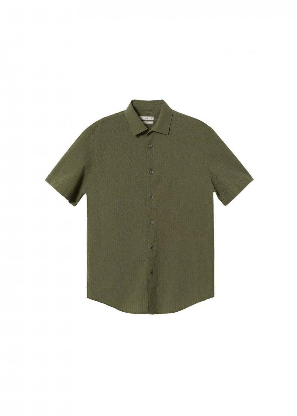 Hombre Camisa algodón seersucker Khaki | Camisas Mango