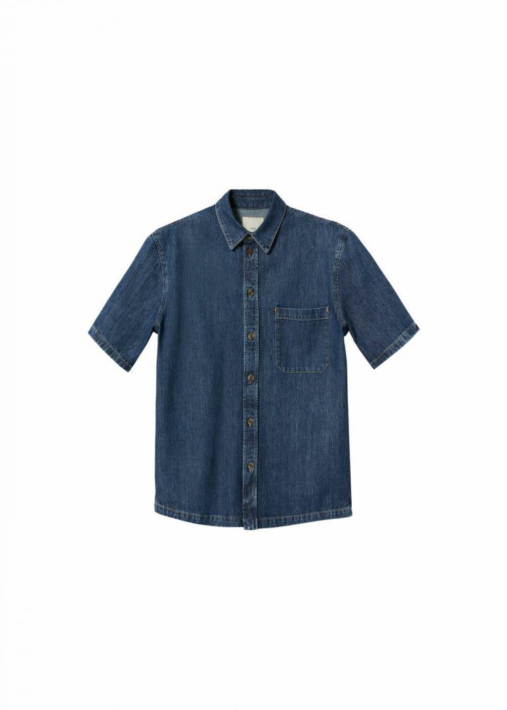 Hombre Camisa denim manga corta Azul Oscuro | Camisas Mango