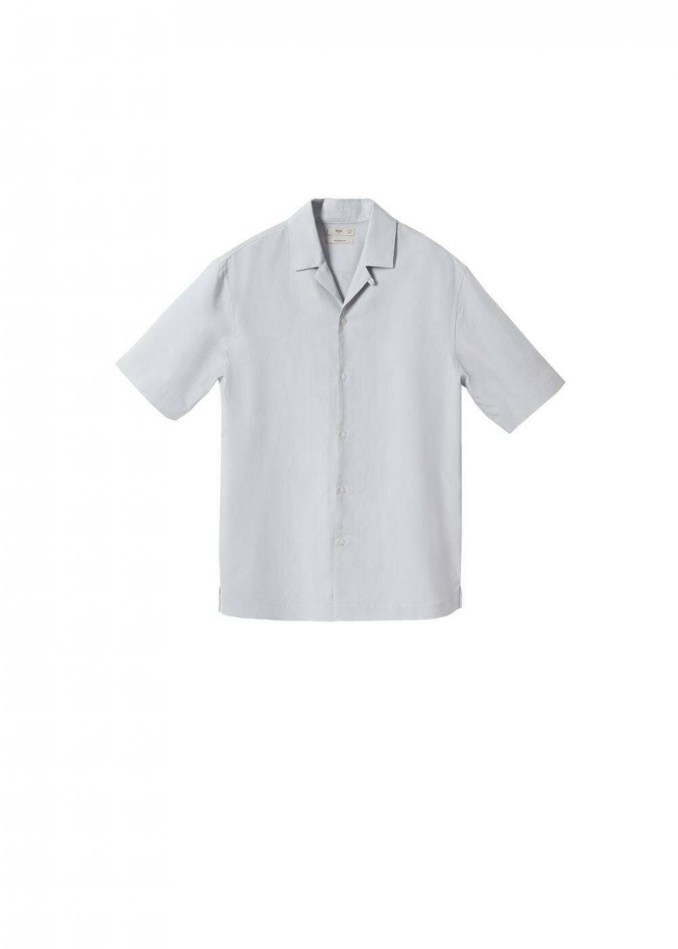 Hombre Camisa lino manga corta Azul | Camisas Mango