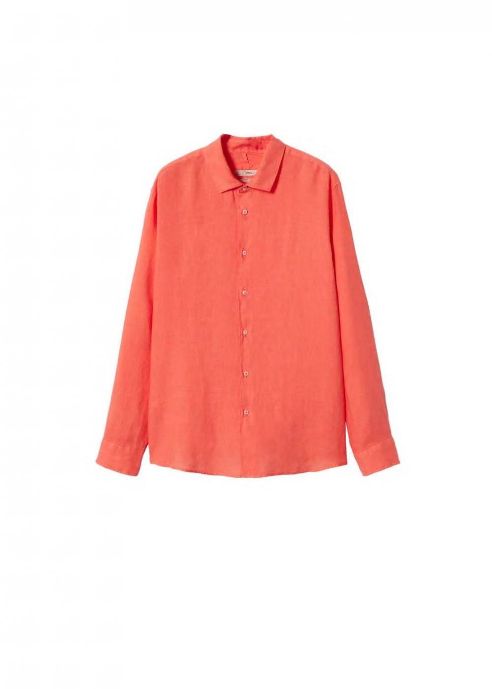 Hombre Camisa 100% lino manga corta Verde Pastel | Camisas Mango