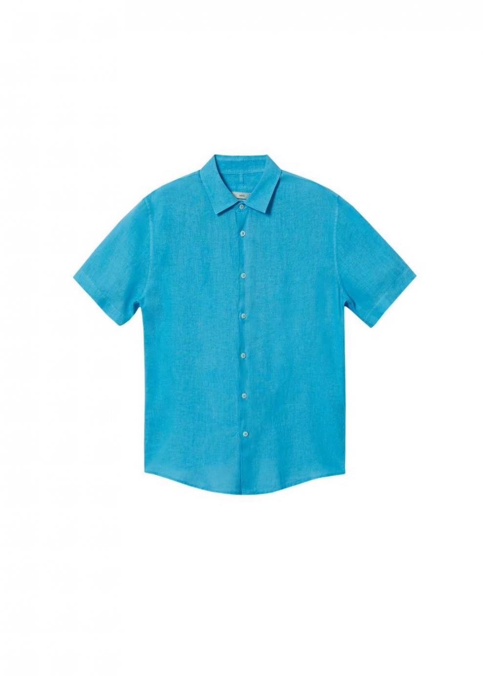 Hombre Camisa 100% lino manga corta Azul | Camisas Mango