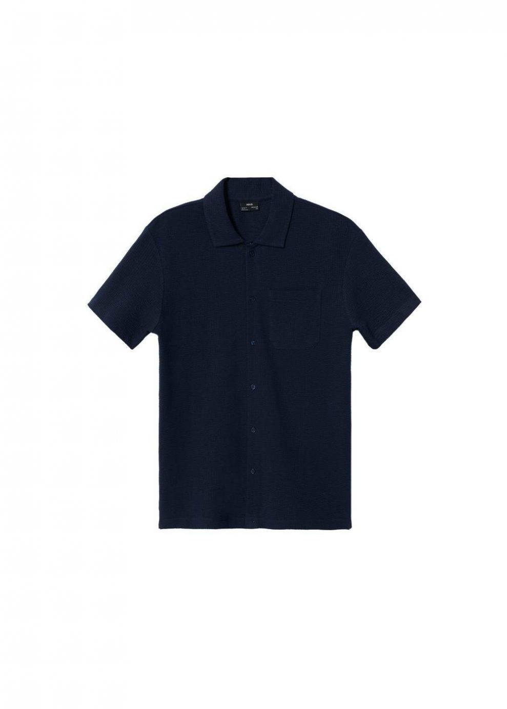 Hombre Camisa algodón seersucker Azul Marino Oscuro | Camisas Mango