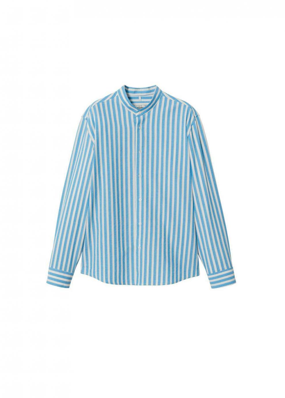 Hombre Camisa cuello mao rayas Azul | Camisas Mango