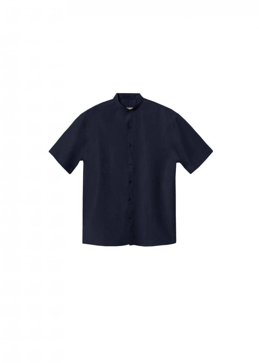 Hombre Camisa lyocell lino cuello mao Azul Marino Oscuro | Camisas Mango