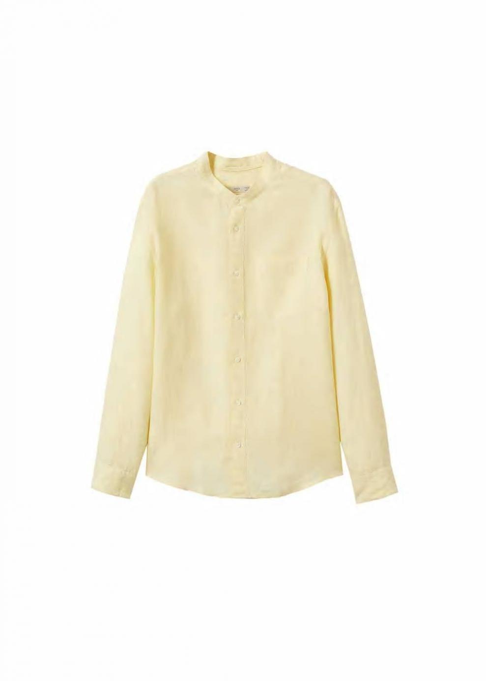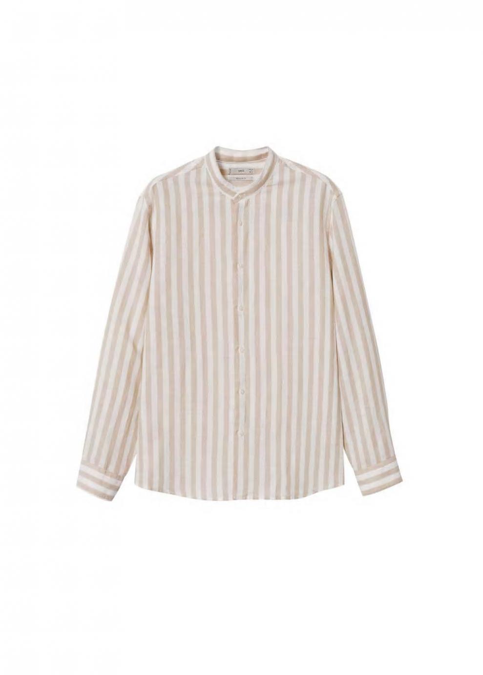 Hombre Camisa lino cuello mao Khaki | Camisas Mango