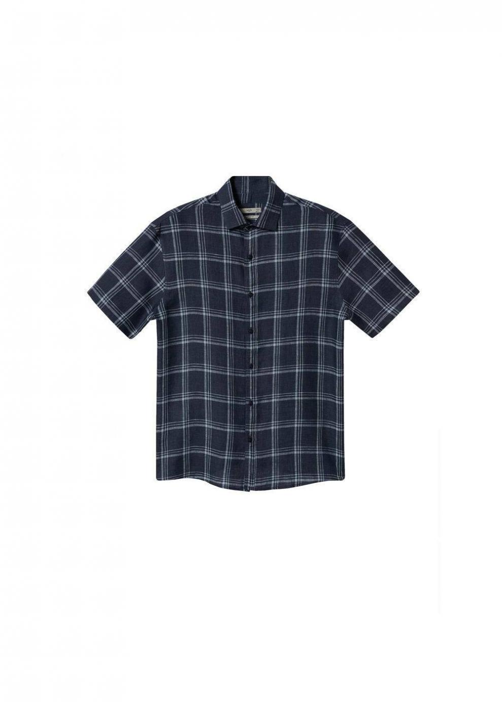 Hombre Camisa relaxed lino cuadros Azul Marino Oscuro | Camisas Mango