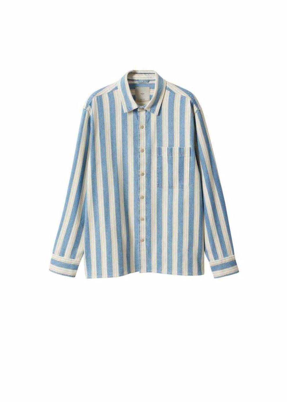 Hombre Camisa vaquera rayas Beige | Camisas Mango