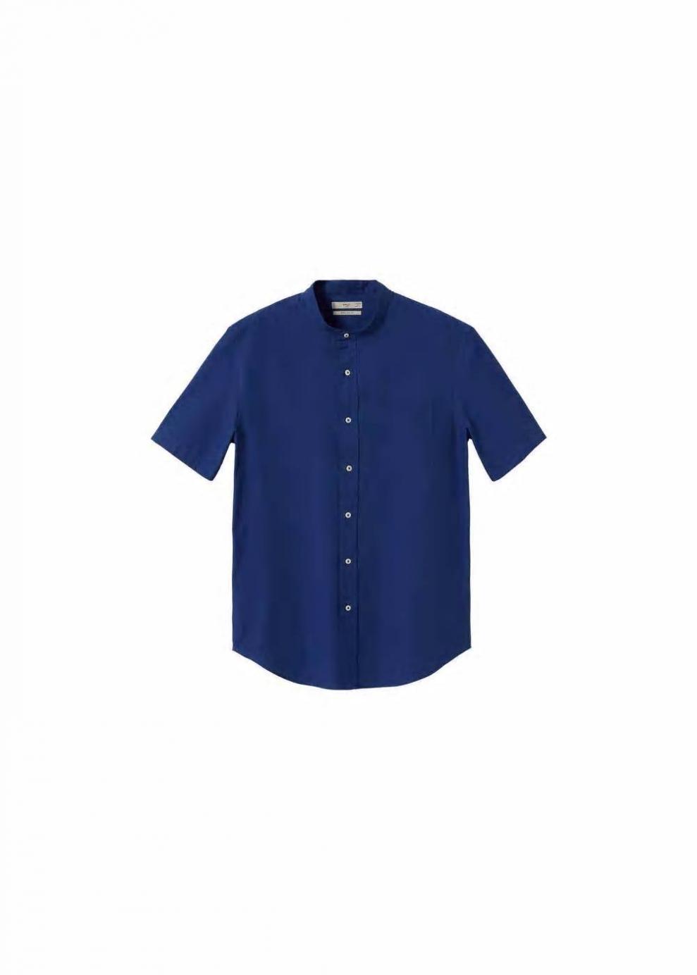 Hombre Camisa algodón cuello mao Azul Marino Oscuro | Camisas Mango