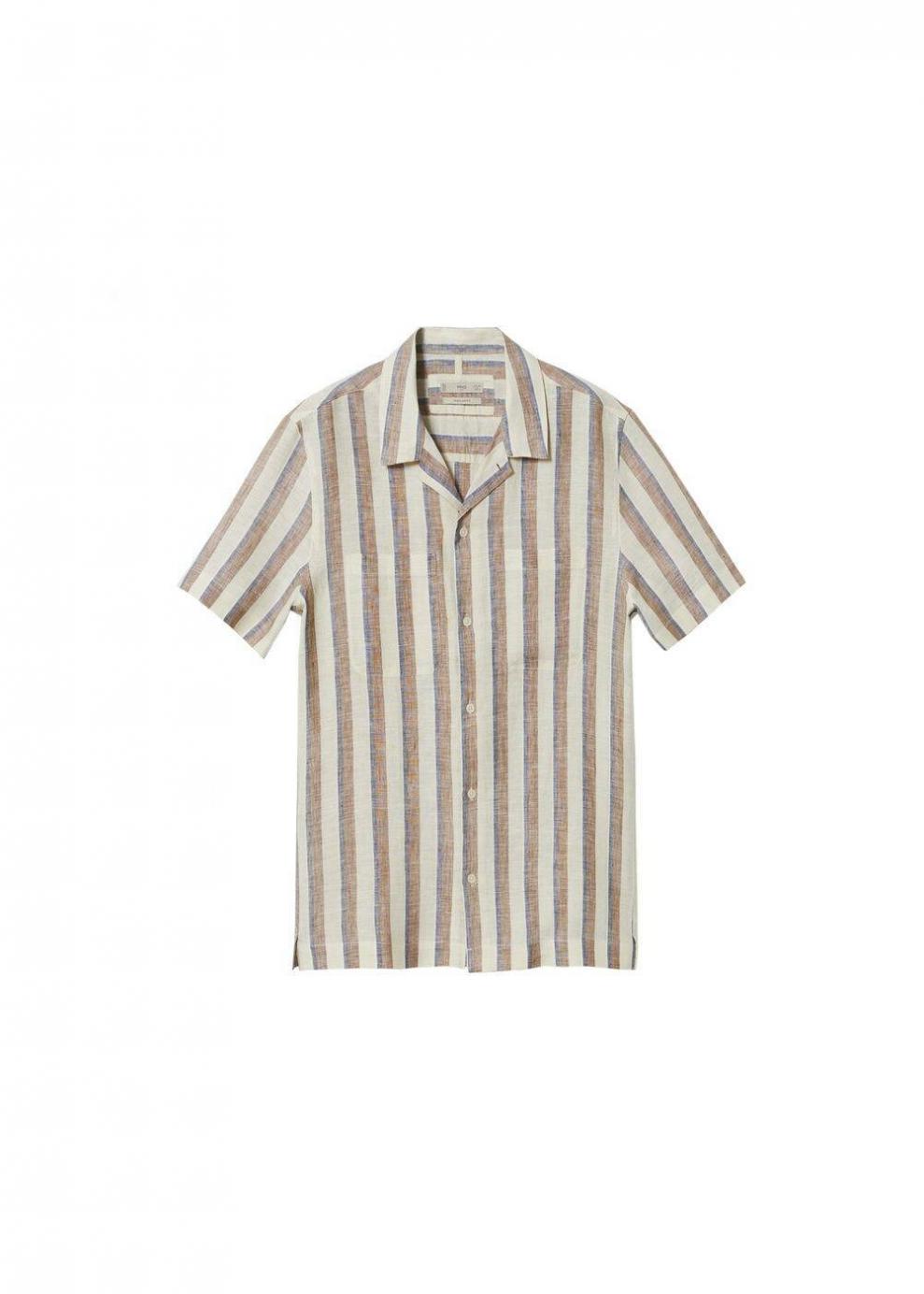 Hombre Camisa lino rayas Arena | Camisas Mango