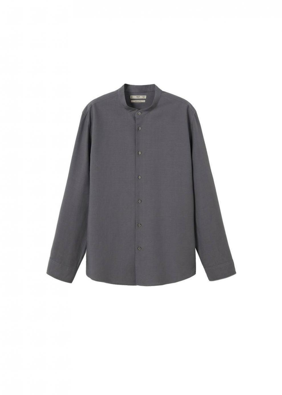 Hombre Camisa lyocell lino cuello mao Gris Antracita | Camisas Mango