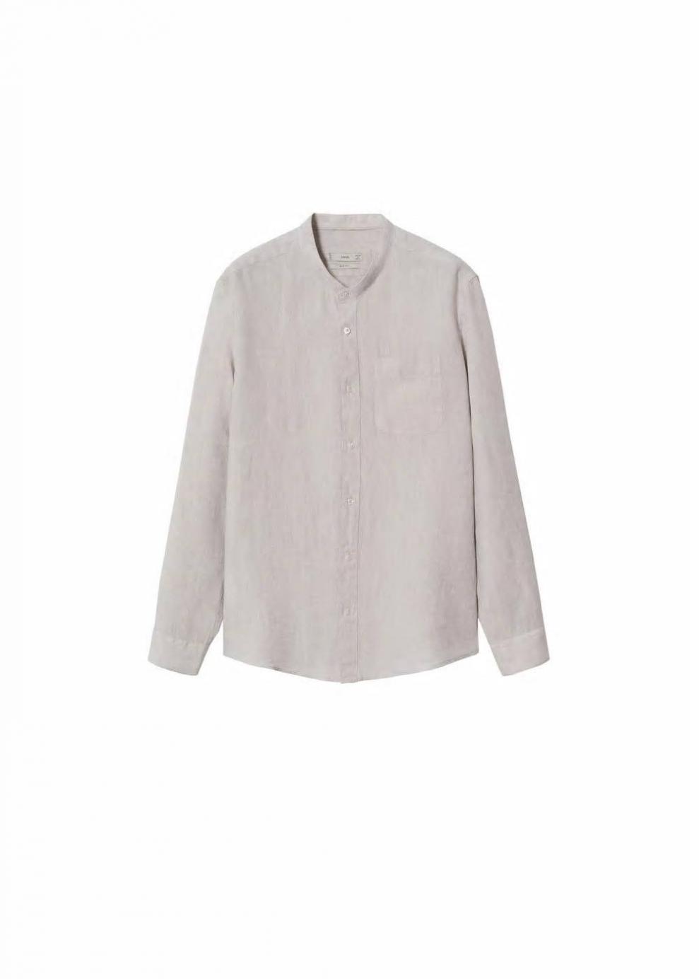 Hombre Camisa lyocell lino cuello mao Beige | Camisas Mango