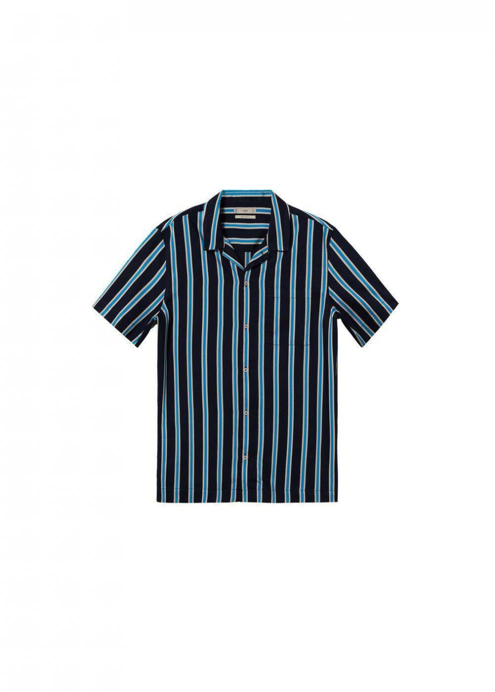 Hombre Camisa rayas manga corta Azul | Camisas Mango