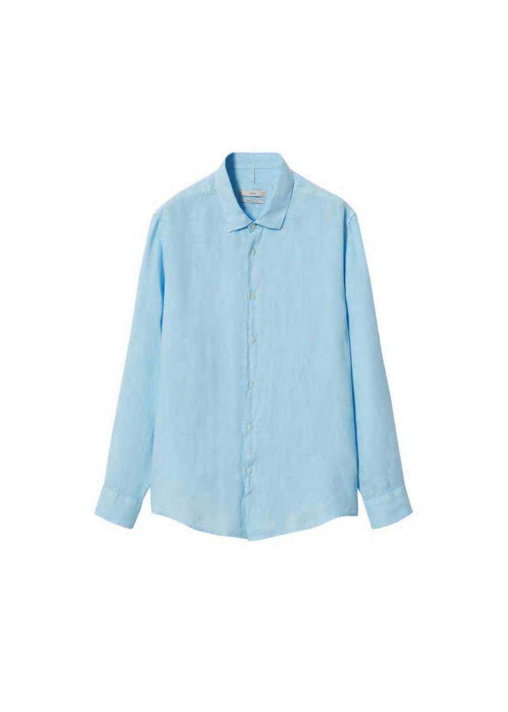 Hombre Camisa slim fit algodón stretch Azul Celeste | Camisas Mango