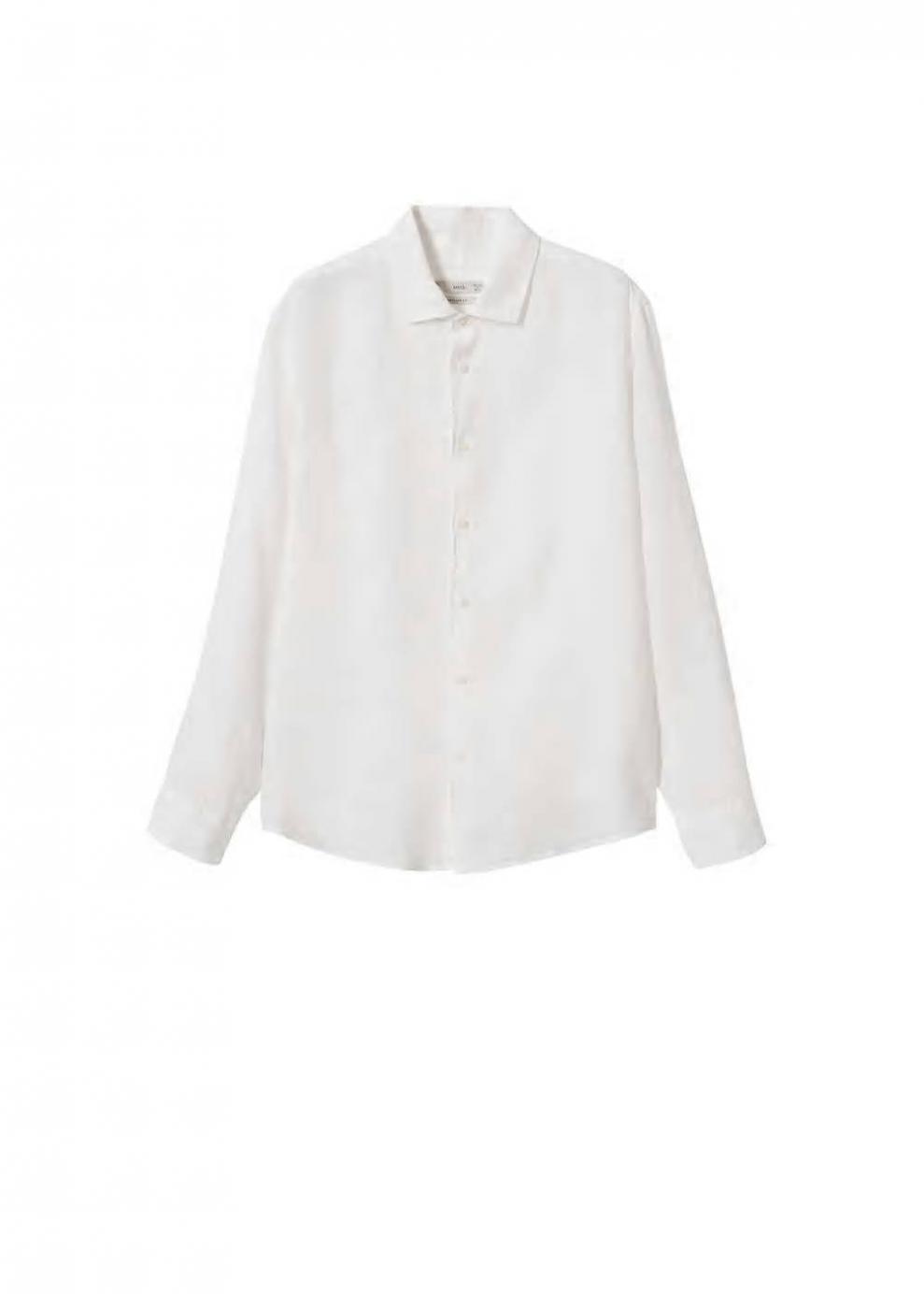 Hombre Camisa lyocell lino bolsillo Blanco Roto | Camisas Mango