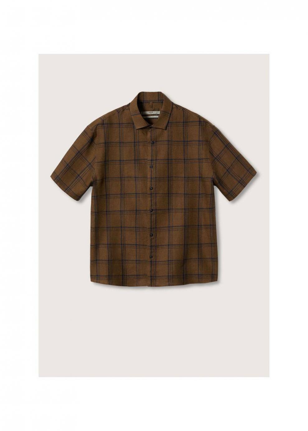 Hombre Camisa relaxed lino cuadros Marrón | Camisas Mango
