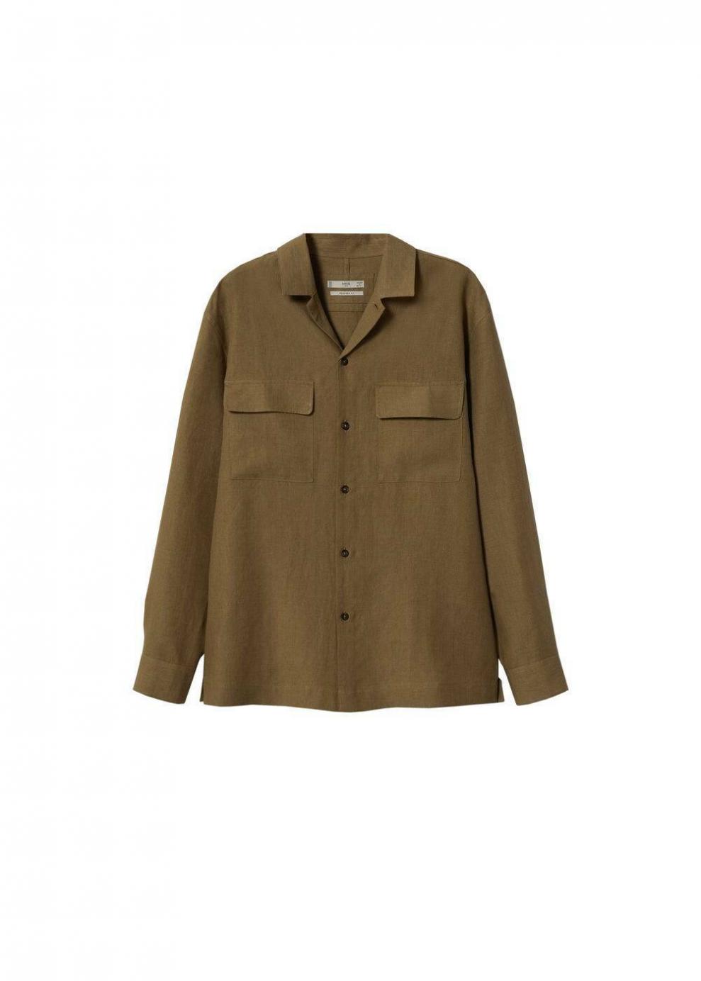Hombre Sobrecamisa lino bolsillo Arena | Camisas Mango