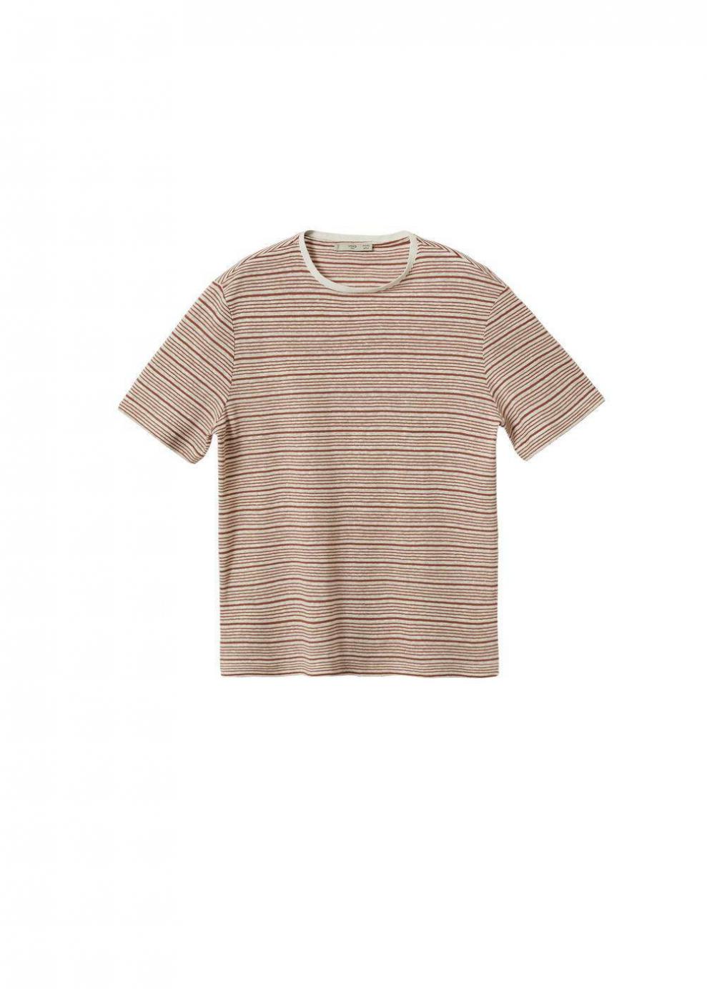 Hombre Camiseta lino rayas Naranja | Camisetas Mango