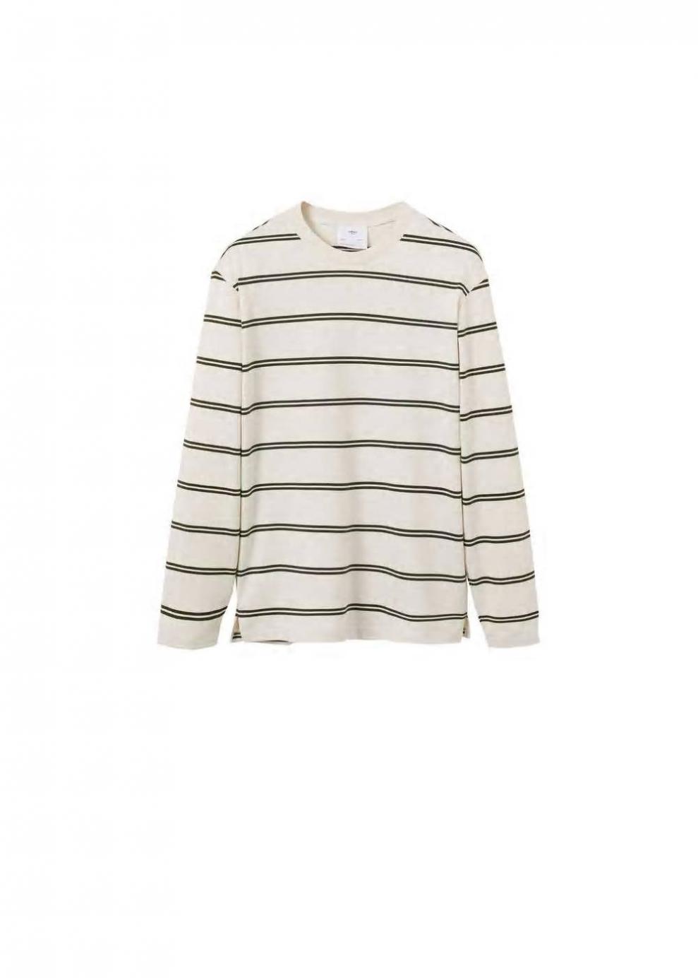 Hombre Camiseta manga larga rayas Blanco Roto | Camisetas Mango