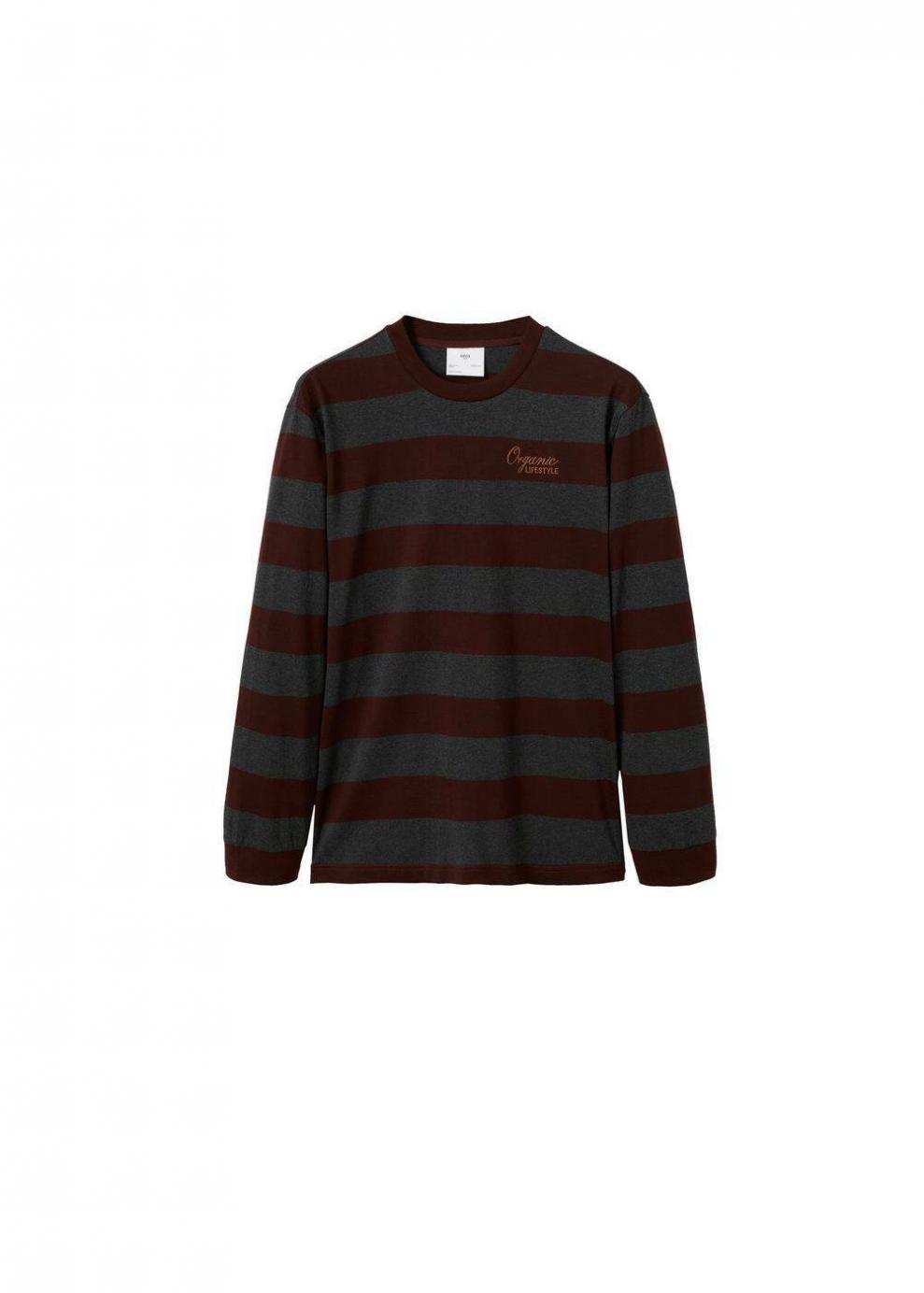 Hombre Camiseta manga larga rayas Granate | Camisetas Mango
