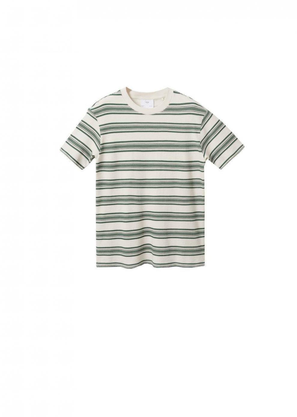 Hombre Camiseta rayas tejido toalla Blanco Roto | Camisetas Mango