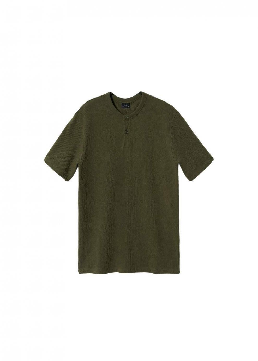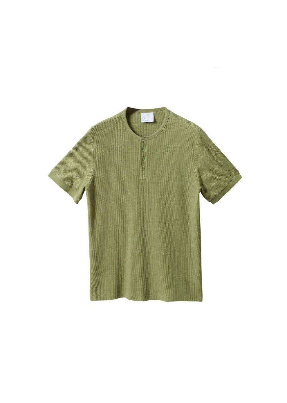 Hombre Camiseta cuello panadero Verde Medio | Camisetas Mango
