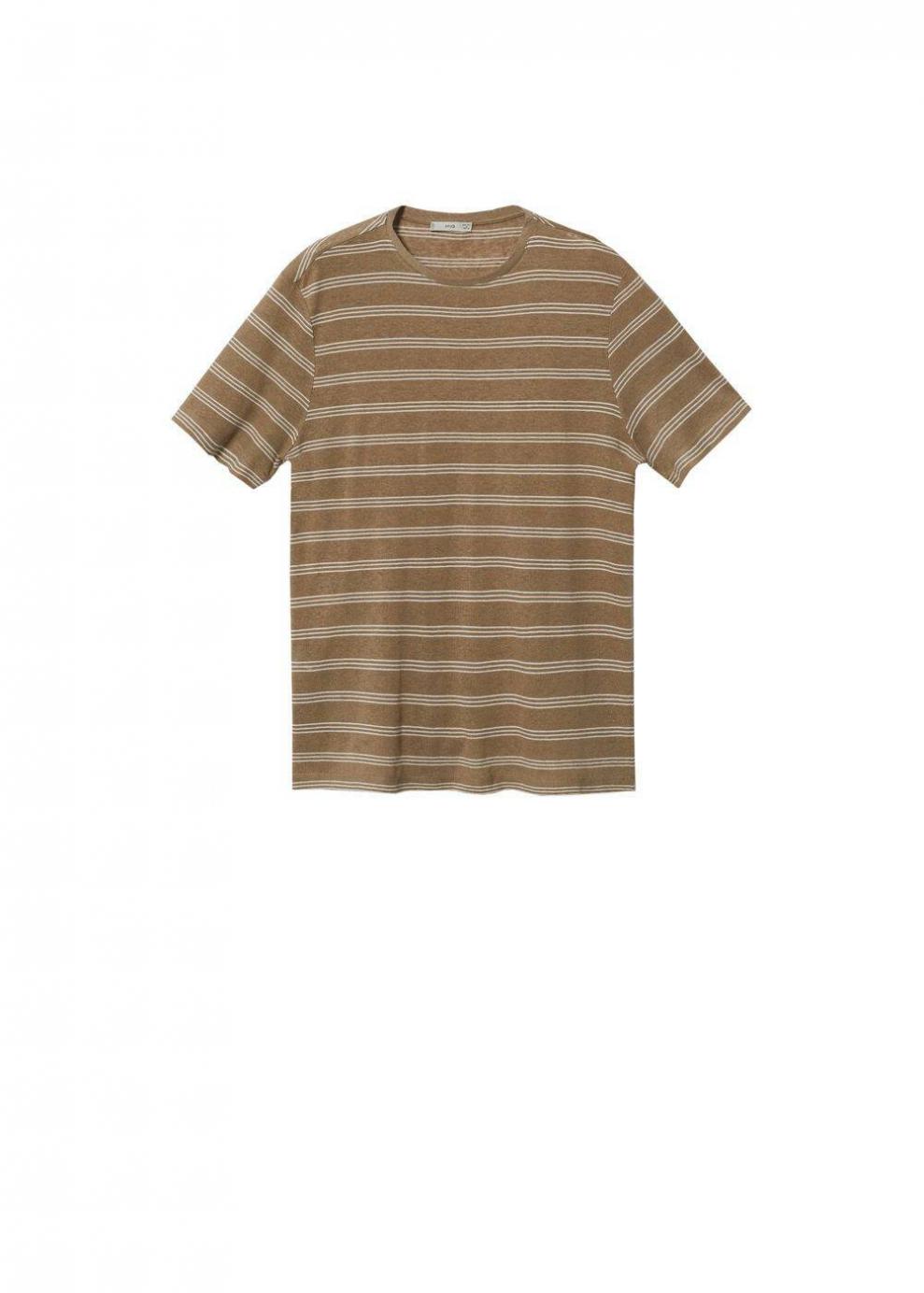 Hombre Camiseta lino rayas Beige | Camisetas Mango