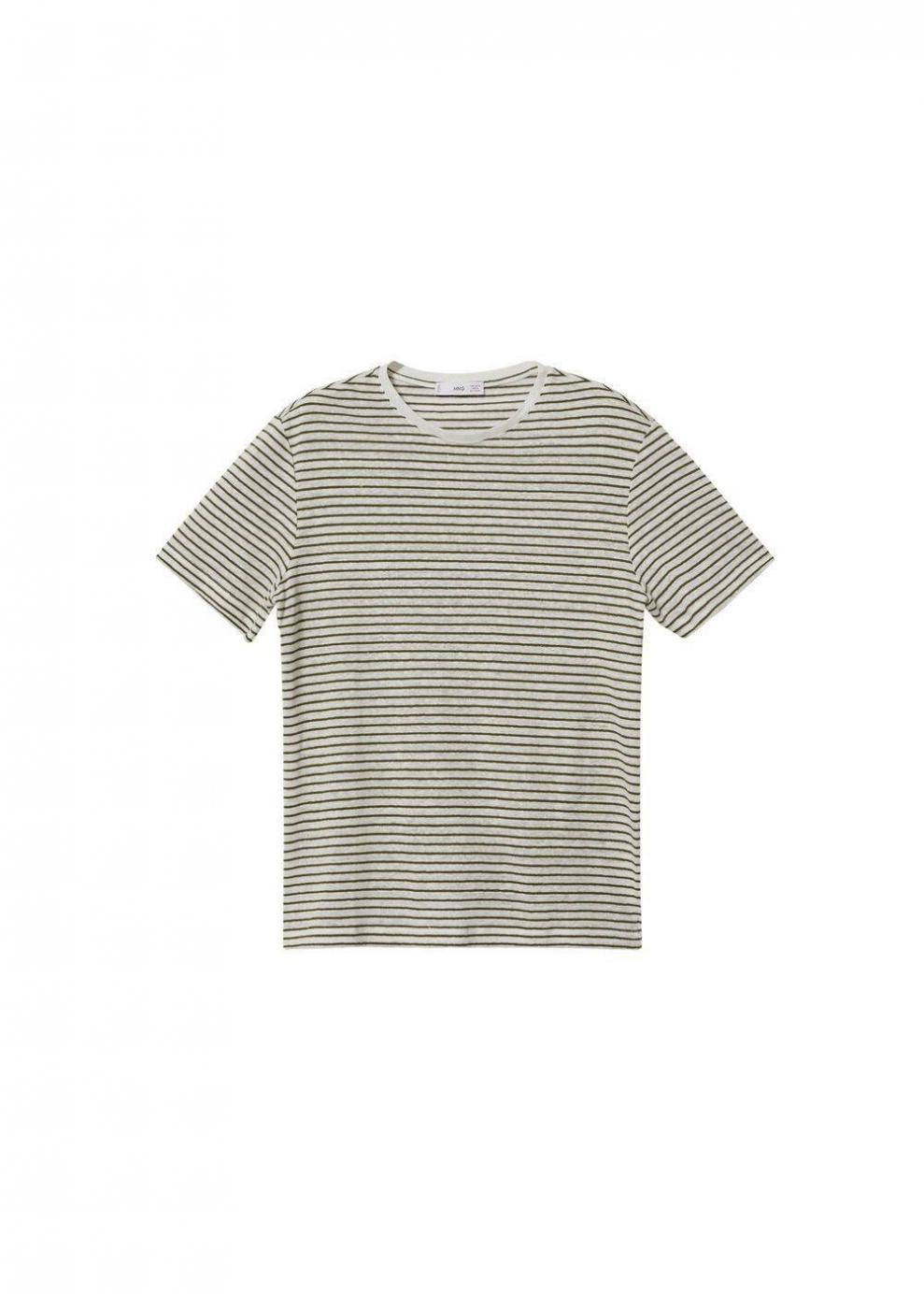 Hombre Camiseta lino rayas Khaki | Camisetas Mango
