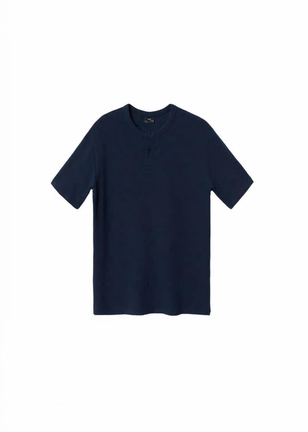Hombre Camiseta seersucker cuello panadero Azul Marino Oscuro | Camisetas Mango